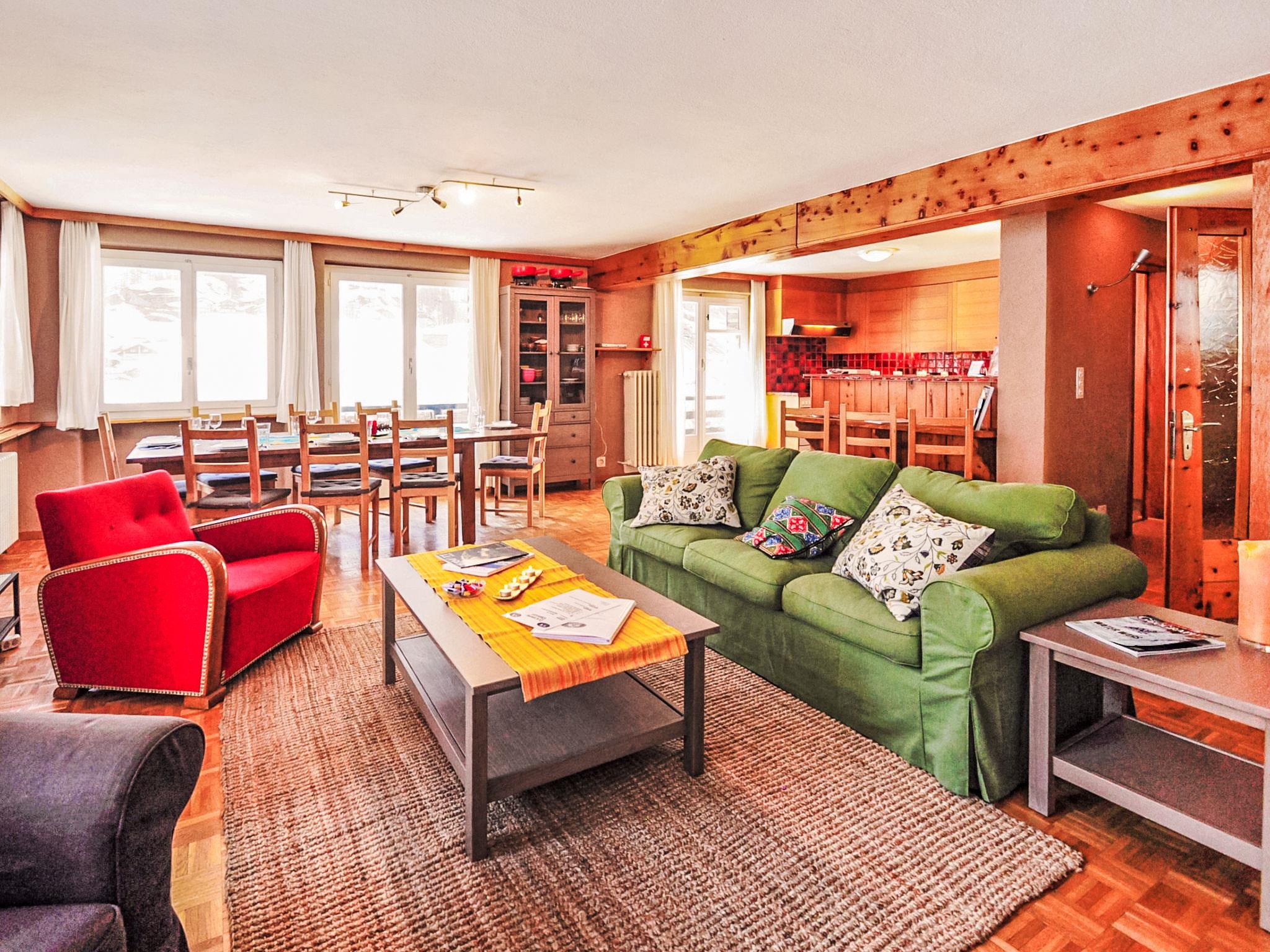 6-room apartment 200 m2 on 2 levels on 1st floor, south-west facing position. Spacious, comfortable and tasteful furnishings: living/dining room with open-hearth fireplace, dining table, TV, hi-fi system and DVD. Exit to the balcony. 1 room with sliding door with 1 x 2 bunk beds (90 cm, length 200 cm), 1 double bed (160 cm, length 200 cm), bath/bidet/WC. Open kitchen (oven, dishwasher, 4 ceramic glass hob hotplates, toaster, kettle, microwave, freezer, electric coffee machine, raclette grill, fondue Set (chinoise, cheese)). Sep. WC. On the lower ground floor: (spiral staircase), 1 room, without window with 1 x 2 bunk beds (90 cm, length 200 cm). 1 room with 1 double bed (2 x 90 cm, length 200 cm). 1 room with 1 double bed (2 x 90 cm, length 200 cm). 1 room with 1 double bed (2 x 90 cm, length 200 cm). Bath/bidet/WC. Large balcony, south facing position and west facing position. Balcony furniture. View of Matterhorn. Facilities: hair dryer. Internet (WiFi, free). Please note: non-smokers only. TIN 2042339049