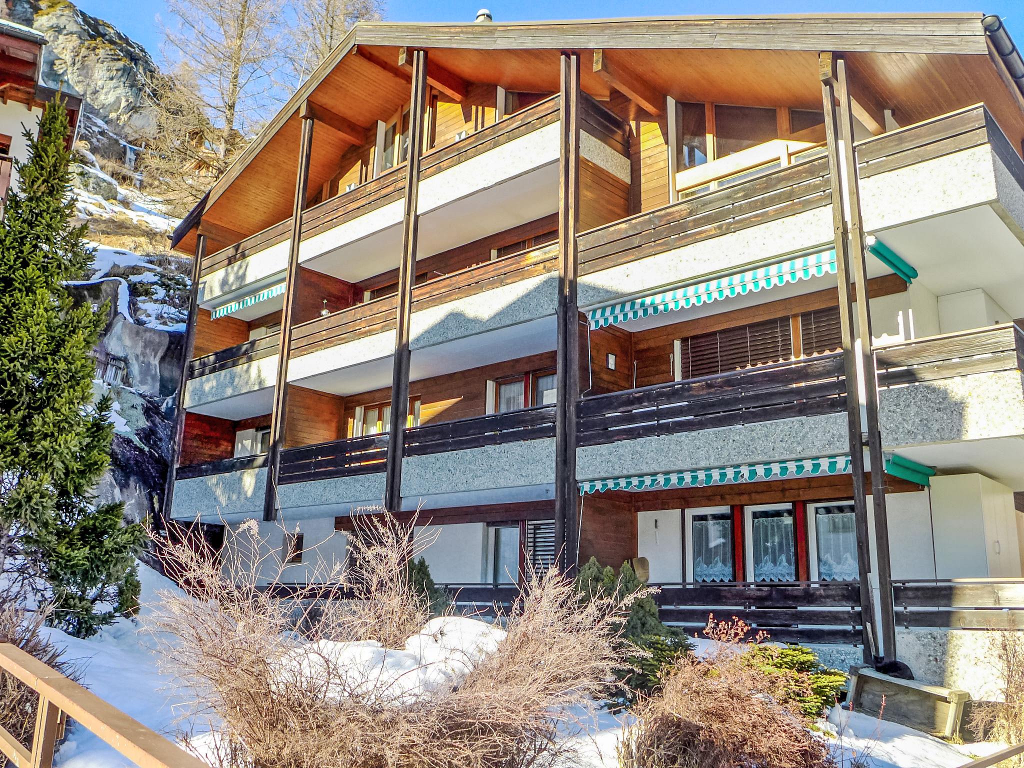 Old, simple apartment house "Zen Stecken A", 3 storeys. In the district of Zen Stecken 1 km from the centre of Zermatt, in a quiet position. In the house: lift, storage room for skis, central heating system. Supermarket 800 m, restaurant 100 m, bakery 650 m, 15 minute walk to the centre, bus stop "Matterhorn glacier paradise" 80 m, railway station "Bahnhof Zermatt" 1 km. Mountain railway, ski rental 100 m, ski bus stop 80 m, ski school 700 m, children's ski school. The keys‘ handover takes place by the agency Interhome in Zermatt.