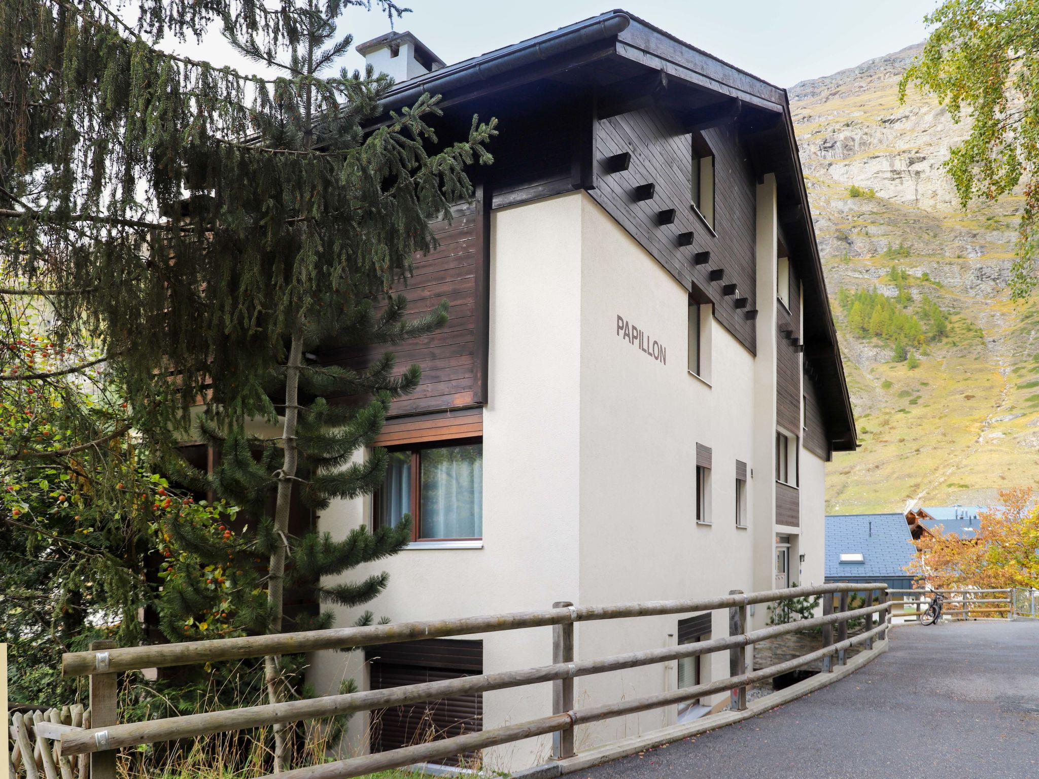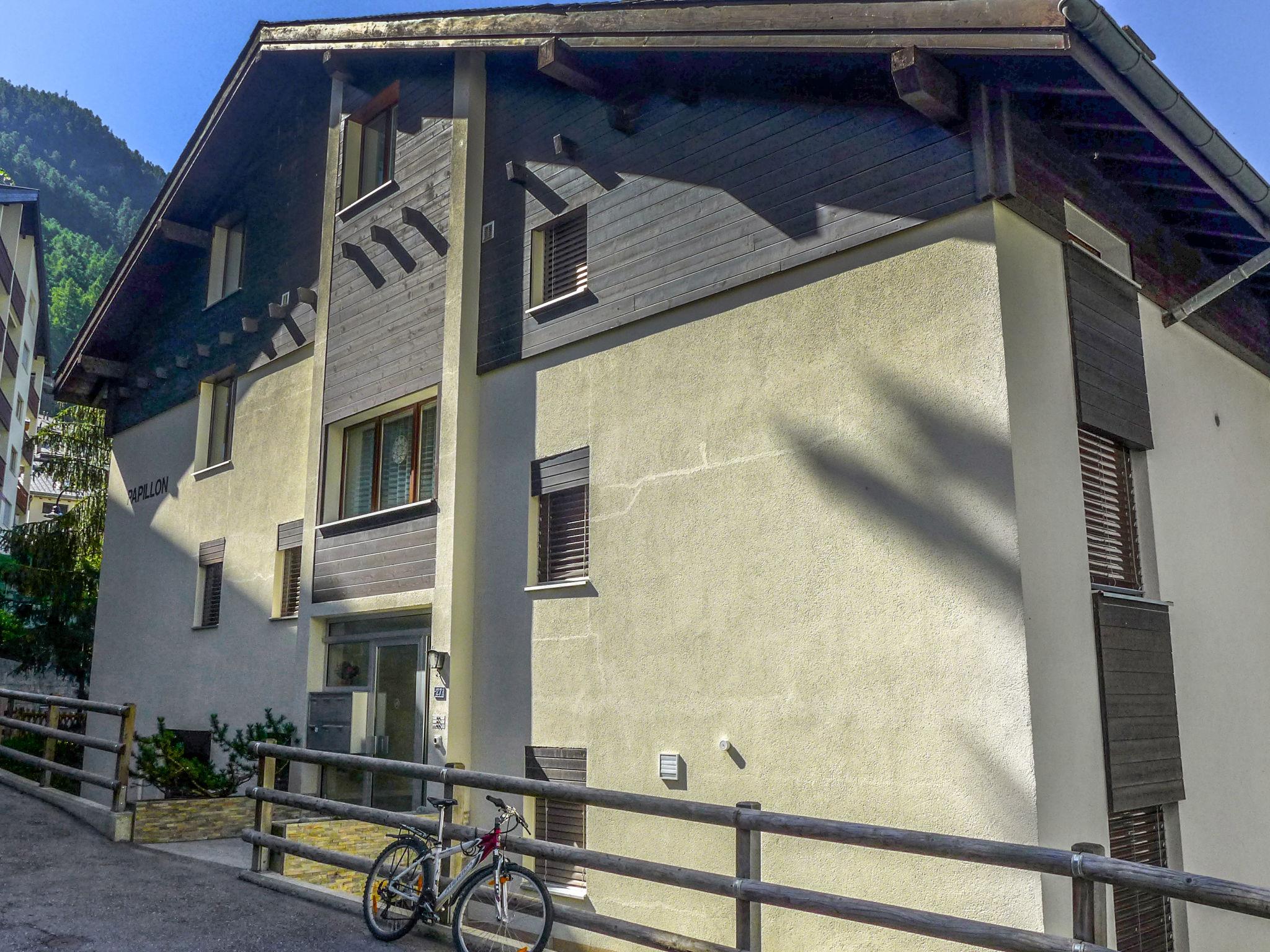 Cosy apartment house "Papillon", 4 storeys. In the district of untere Wiesti, in a quiet position, south facing position. In the house: storage room for skis, central heating system. Supermarket 500 m, restaurant 290 m, bakery 650 m, bicycle rental 300 m, 8 minute walk to the centre, bus stop "Wiestibrücke" 300 m, railway station "Banhof Zermatt" 650 m. Mountain railway 450 m, ski rental, ski bus stop 290 m, ski school 700 m. The keys‘ handover takes place by the agency Interhome in Zermatt.
