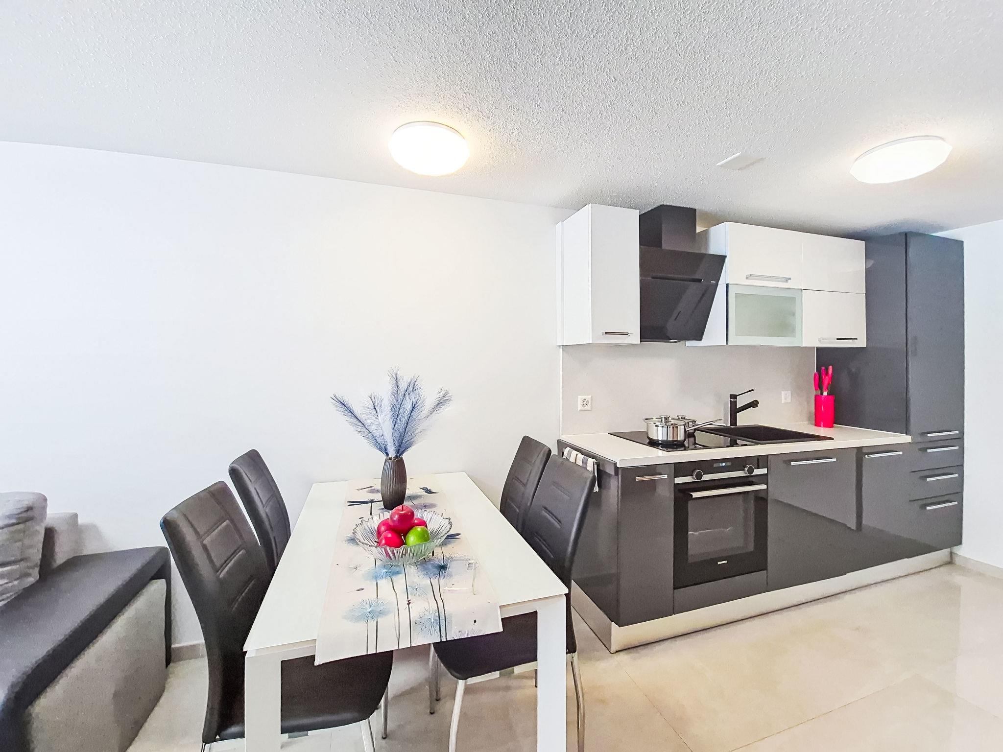 "Bellevue", 2-room apartment 50 m2 on 2nd floor. Beautiful and tasteful furnishings: living/sleeping room with 1 double sofabed (140 cm, length 200 cm), dining table and digital TV. Exit to the balcony. 1 double bedroom with 1 double bed (160 cm, length 200 cm). Open kitchen (oven, dishwasher, 4 induction hot plates, toaster, kettle, electric coffee machine). Shower/WC. Heating. Balcony. Balcony furniture. View of the mountains. Facilities: hair dryer. Internet (WiFi, free). Please note: non-smokers only.