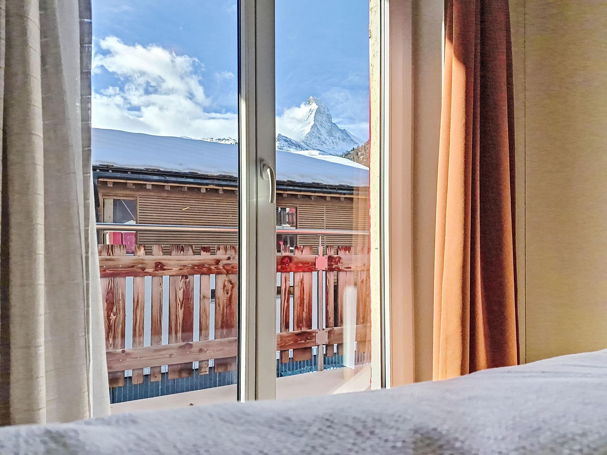 "Juliana 829", 3-room apartment 45 m2 on 3rd floor. Fully renovated in 2025, beautiful and stylish furnishings: living/dining room with dining table and digital TV. Exit to the balcony. 1 double bedroom with 1 double bed (180 cm, length 200 cm). Exit to the balcony. 1 room with 1 bed (140 cm, length 200 cm), 1 x 1 bunk beds (90 cm, length 200 cm). Exit to the balcony. Open kitchen (oven, dishwasher, 4 ceramic glass hob hotplates, toaster, kettle, freezer, electric coffee machine). Shower/WC. Heating. 2 balconies. Balcony furniture. Very beautiful view of the mountains and the Matterhorn. Facilities: hair dryer. Internet (WiFi, free). Please note: non-smokers only.