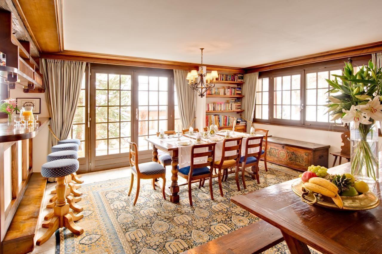 Classically furnished, Chalet Zen retains the feel of an authentic Swiss chalet yet includes a massage room and steam-shower, outdoor hot tub, wifi, satellite and cable TV channels, Apple TV and Sonos music system. The chalet accommodates up to 10 guests across four bedrooms and a fifth bunk-room that is connected to one bedroom and a bathroom, to create a family Suite. Three of the four bedrooms have south facing balconies with Matterhorn views. The five luxurious marble bathrooms (4 en-suite) have under-floor heating. There are two spacious living and dining areas with fireplaces, along with a small study and well-stocked library of books, DVDs and games to suit all ages.