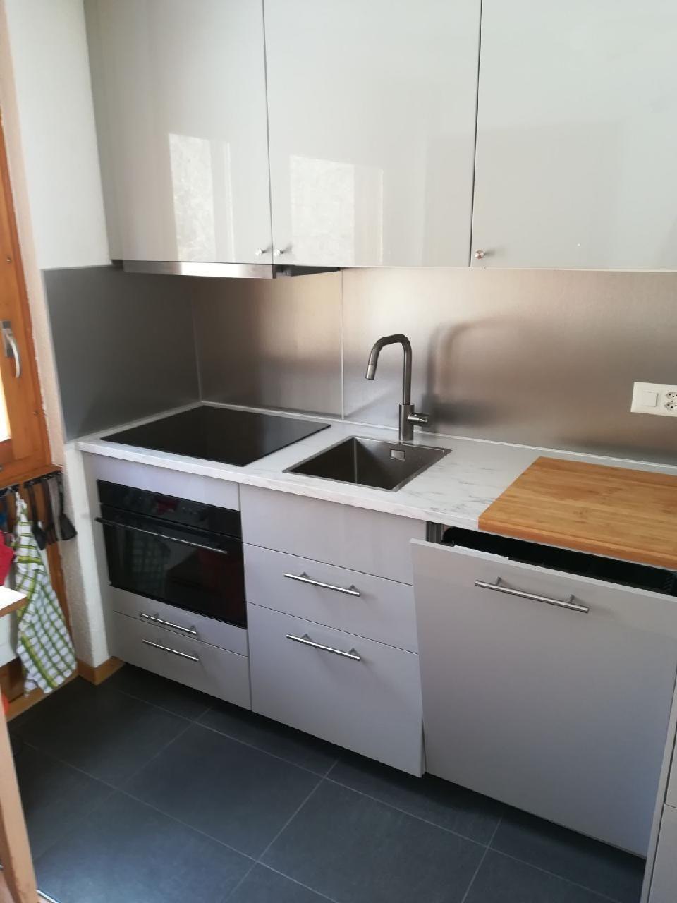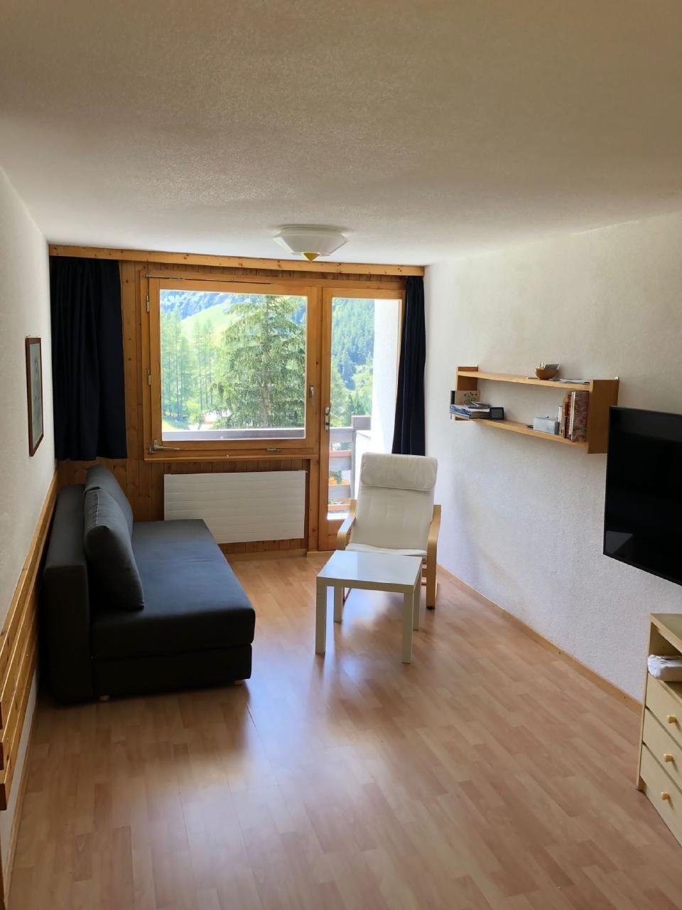 Bright 3.5 room flat (54 m2) on the 6th floor, beautifully furnished, open-plan living/dining room with sofa bed and wonderful view of the mountains and the nearby forest, 1 room with double bed, 1 room with 2 single beds, bathroom, separate WC, cable TV, large balcony (south-east), open-plan kitchen (dishwasher, ceramic hob, microwave with freezer function, Nespresso machine and kettle), large heated ski room on the ground floor for private use.