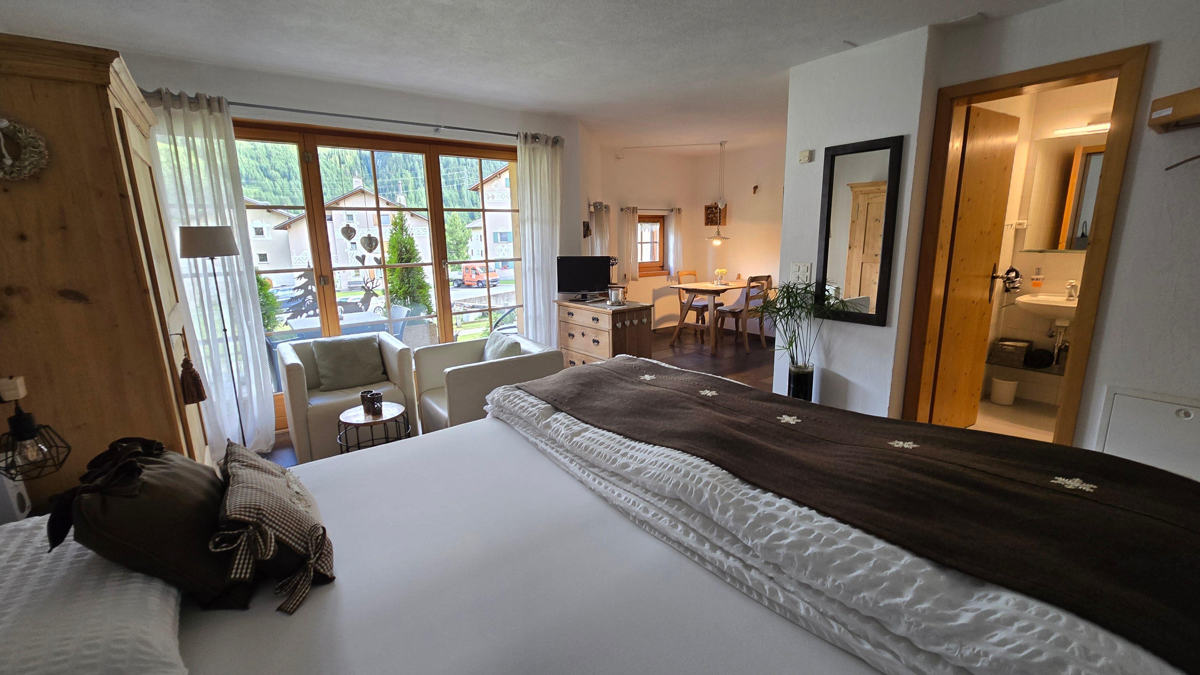 Welcome to our sun-kissed 1 1/2 room flat on the ground floor, which will delight you with its quiet yet active location. Enjoy the cosiness of our homely, rustic-style flat, which invites you to relax and linger on its sunny terrace. Make yourself comfortable in this charming retreat at any time of year and experience unforgettable moments in the Engadin.