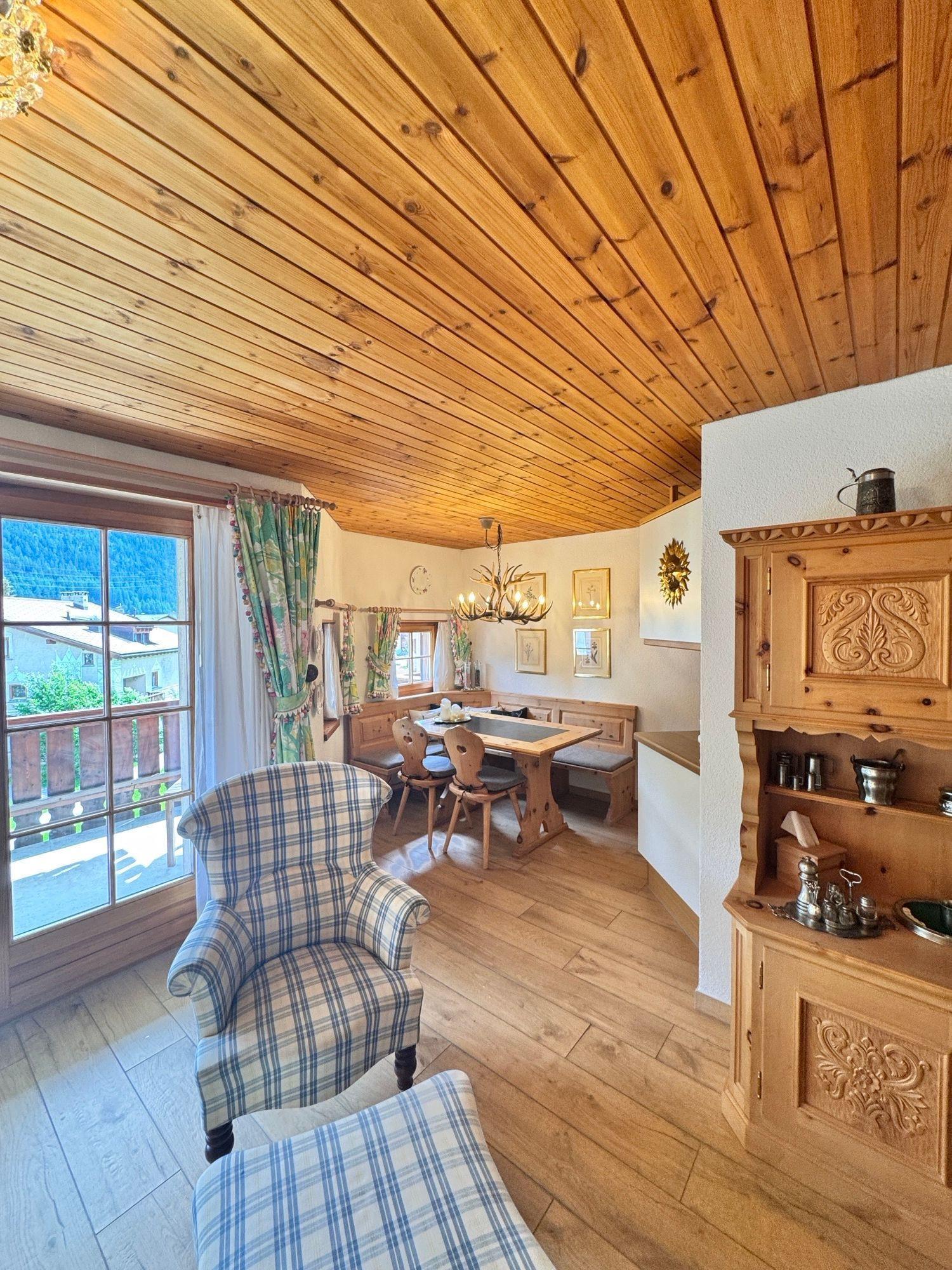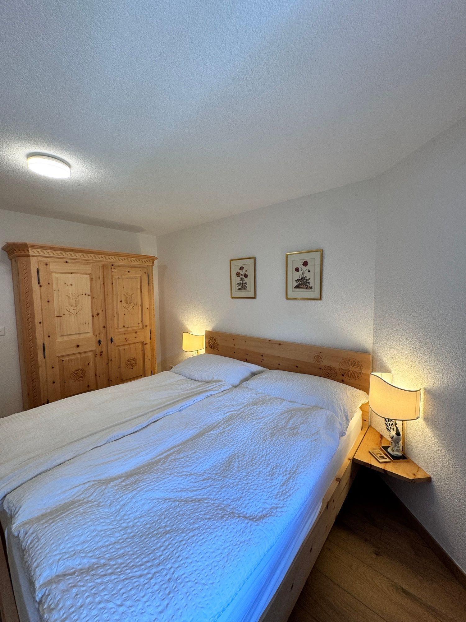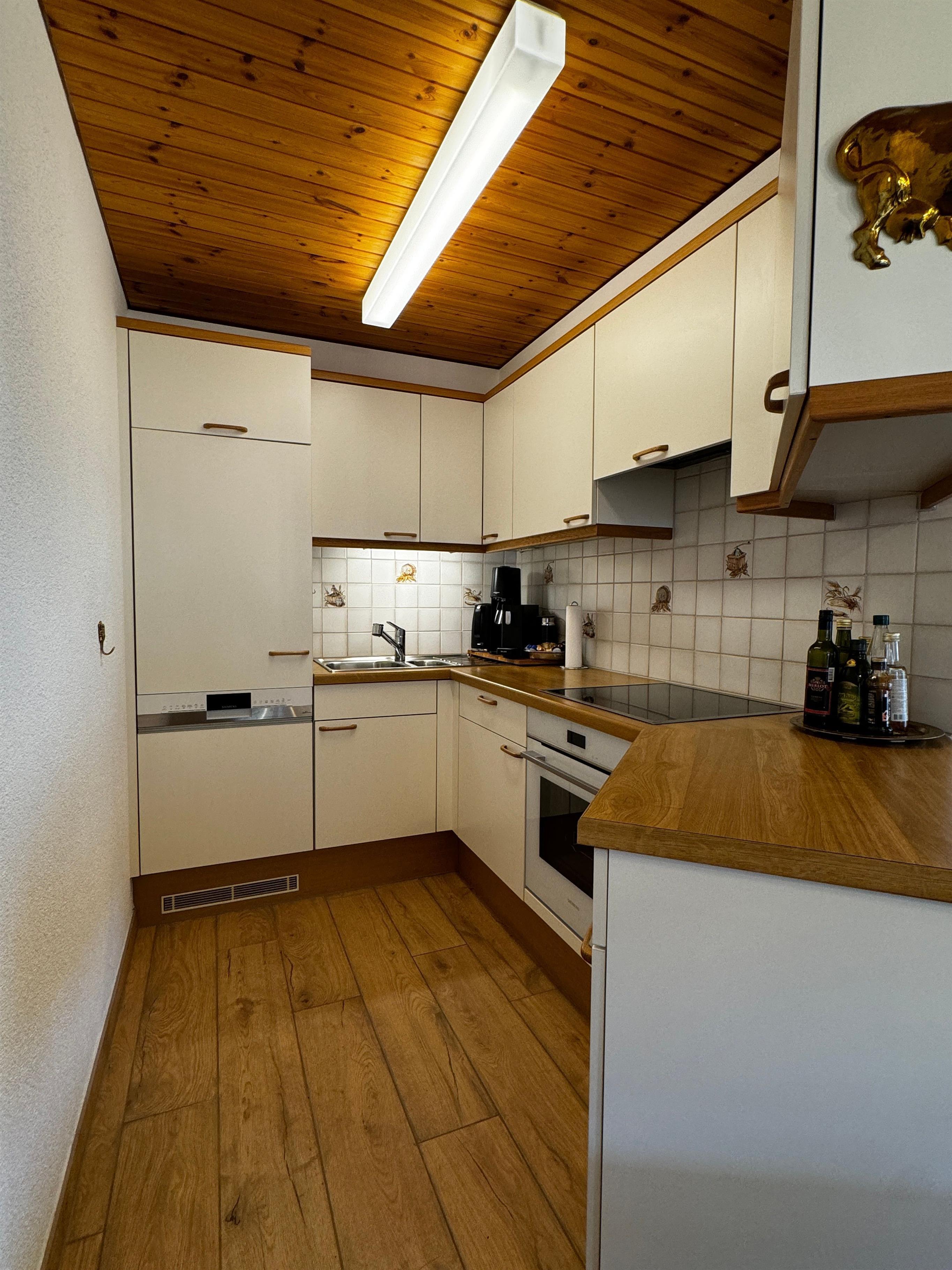 The flat is located on the second floor of a well-kept house and is characterised by cosy furnishings with Swiss stone pine furniture. A south-facing living room flooded with sunlight and a south-facing, quiet bedroom ensure relaxing moments. Additional comfort is provided by a bright bathroom with bathtub, equipped with large mirror fronts, which creates a pleasant atmosphere. The modern kitchen is equipped with all the necessary appliances such as an induction hob, capsule coffee machine (Delizio), Sodastream, kettle, toaster as well as fondue and raclette dishes - ideal for cosy evenings.