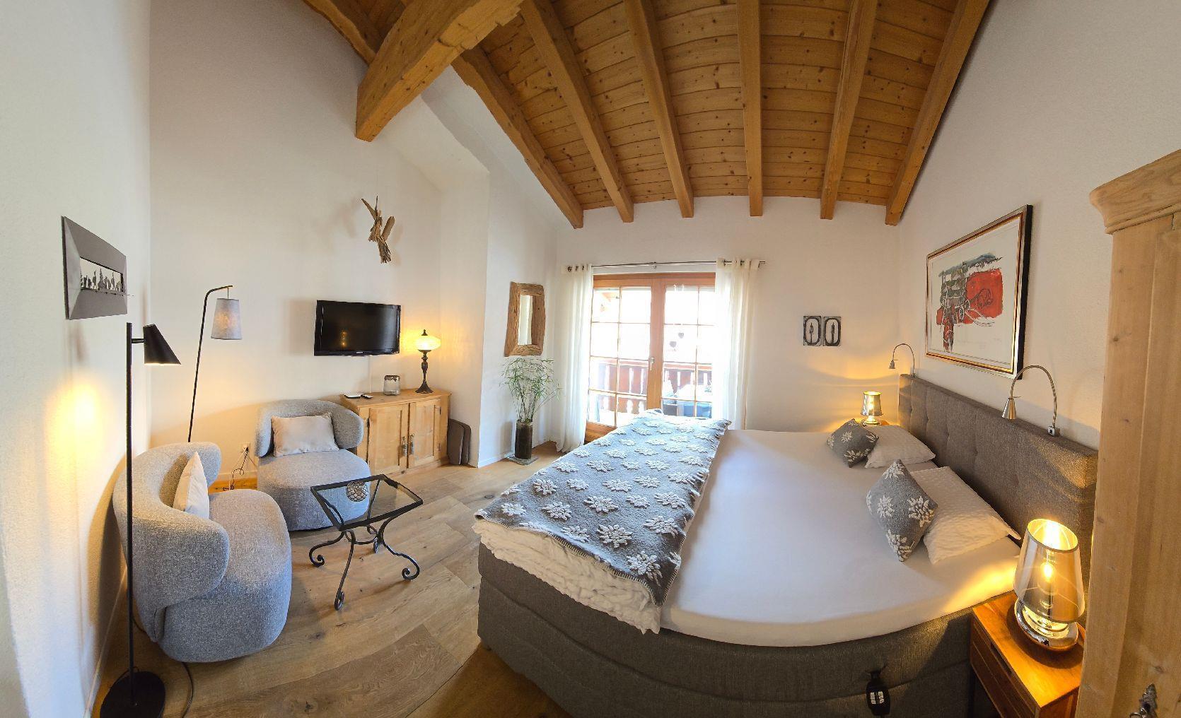 Sunny 1 1/2 room apartment on the 2nd floor, with elevator, in a quiet area, with a sunny balcony. Rustic, very homely. Parquet floor with underfloor heating. Well-equipped kitchen, 4 hot plates, fridge with freezer, dishwasher, filter or capsule coffee machine, fondue and raclette dishes, kettle, microwaves also on request. Ski an Bike room, storage space in the besement.