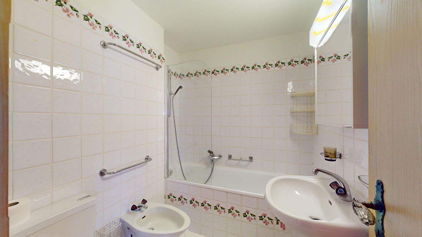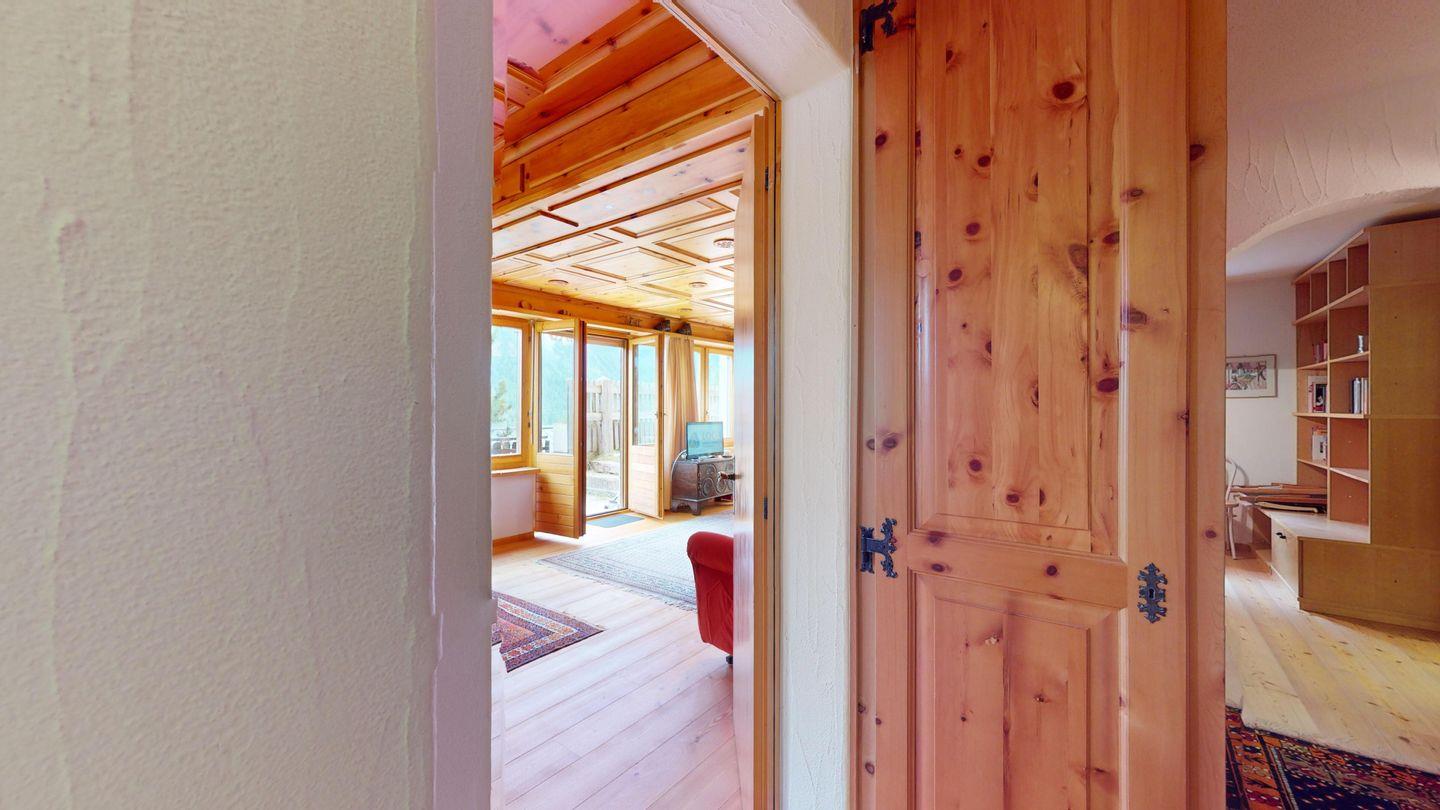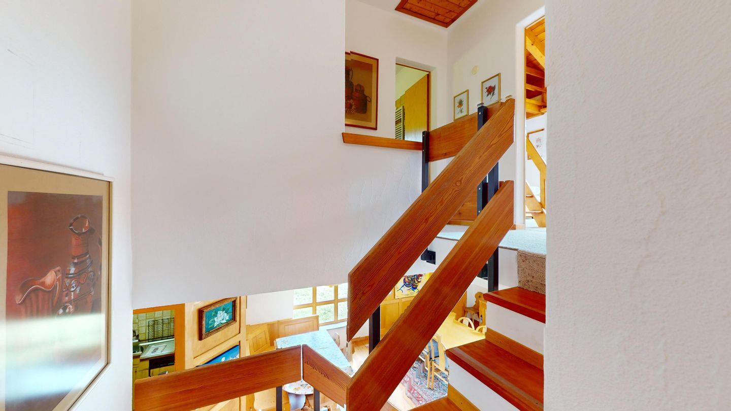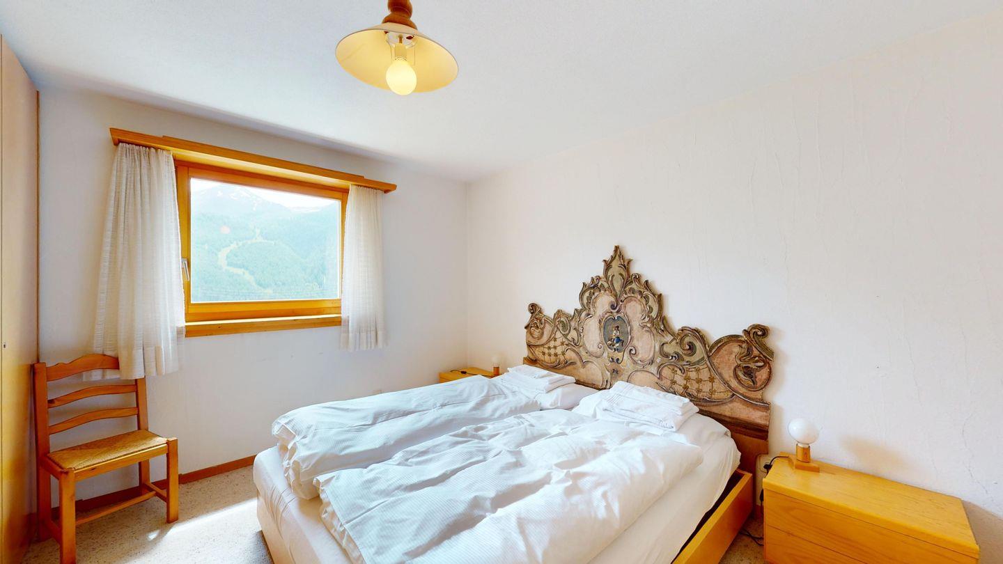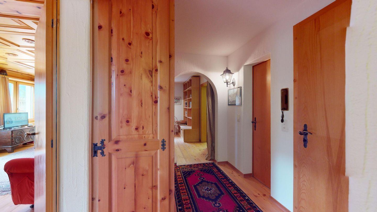 5-½ Zimmerwohnung an sonniger Lage, mit herrlicher Sicht ins Tal und auf mehreren Etagen verteilt. Eingang mit Garderobe und Badezimmer mit Wanne, WC, Bidet und Waschbecken. Wohnzimmer mit TV, Kamin, Terrasse und Garten. Küche mit Herd, Ofen, Kühlschrank und Geschirrspüler. Esszimmer mit zwei Esstischen und Terrasse. Gäste-WC. Ein Einzelschlafzimmer. Ein Doppelschlafzimmer mit eigenem Badezimmer (Dusche, WC, Bidet und Lavabo). Ein Doppelschlafzimmer, und ein Schlafzimmer mit zwei Etagenbetten. Badezimmer mit Wanne, WC, Bidet und Waschbecken. Gemeinsame Waschküche und Skiraum. Zwei gedeckte Parkplätze. Haustiere sind nicht erlaubt. Nichtraucherwohnung.