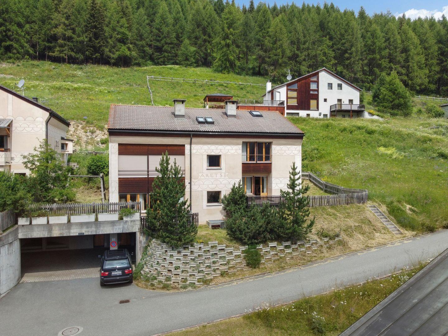 Die Chesa Arets liegt in der zwei letzten Reihe hoch über Zuoz und bietet einen traumhaften Blick über das Tal. Das Dorf Zuoz bietet eine Auswahl an verschiedenen Geschäften und Restaurants und verfügt über ein eigenes, familienfreundliches Skigebiet.