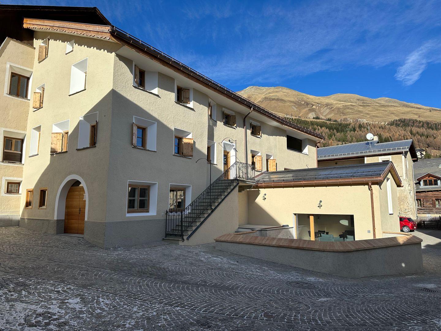 Die Chesa Unica liegt inmitten des historischen Ortskerns von Zuoz. Einkaufsmöglichkeiten, Restaurants, Sportgeschäfte und der Skilift sind in unmittelbarer Nähe.