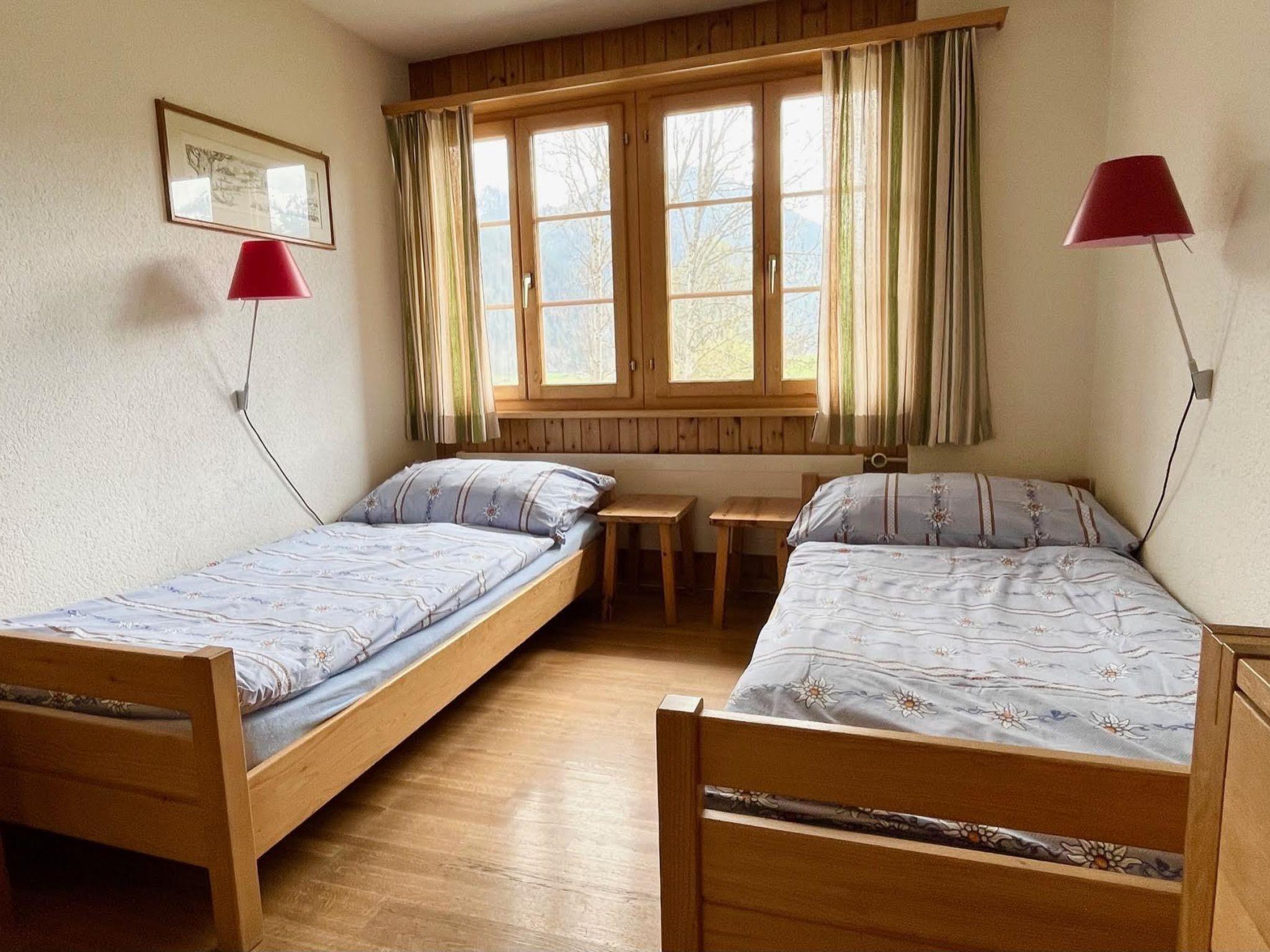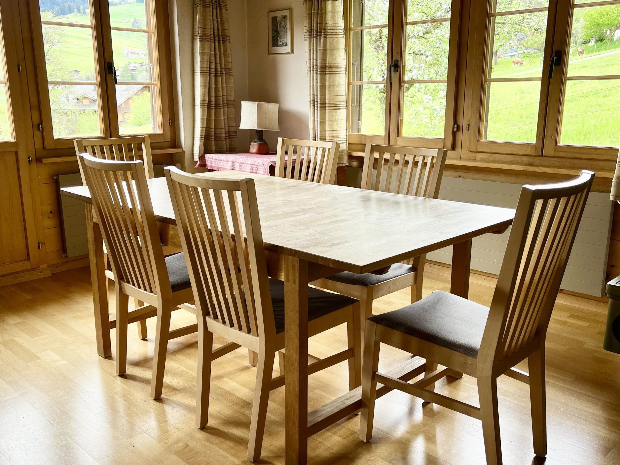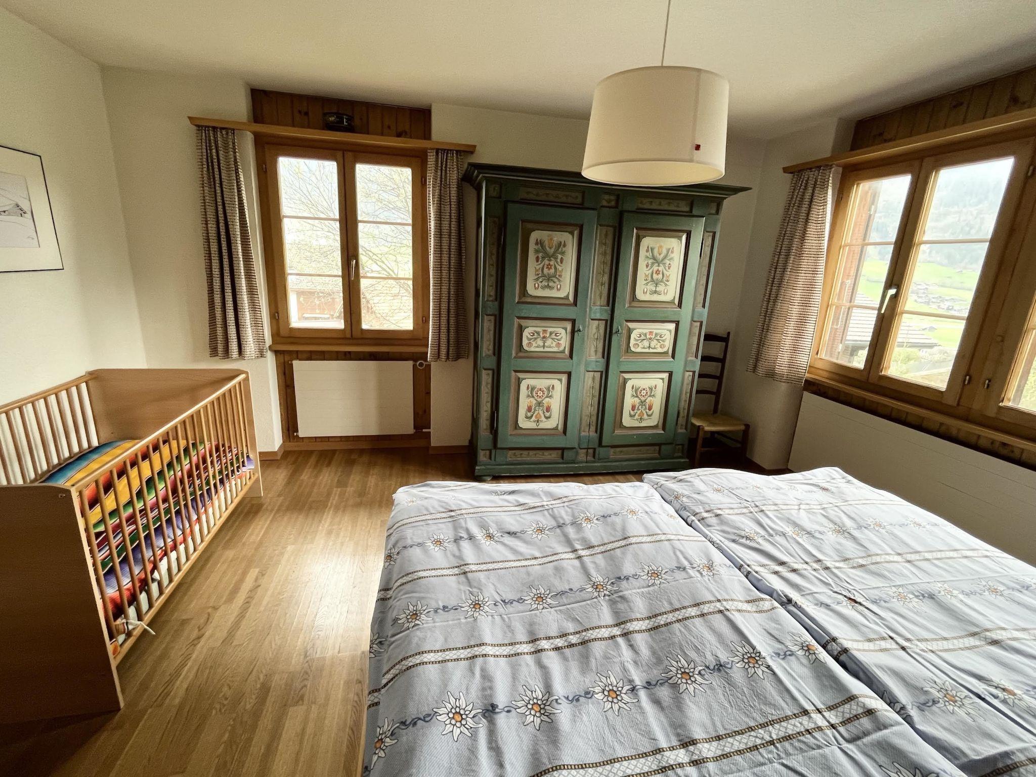 Separate kitchen with dining table, dishwasher, coffee machine with capsules (Delizio) as well as a fondue-raclette set. Spacious living room with fireplace and dining table, TV/phone/radio, WiFi. 1 bathroom with bathtub/shower/toilet. 1 bedroom with 2 single beds (2x100x190cm). 1 bedroom with 3 single beds (2x90x190cm), 1 trundle bed (90x190cm) and 1 bathroom with shower/toilet. 1 bedroom with 2 pushed together single beds (2x90x190cm). Baby cot (70x140cm), travel crib incl. bed linen and highchair available.
