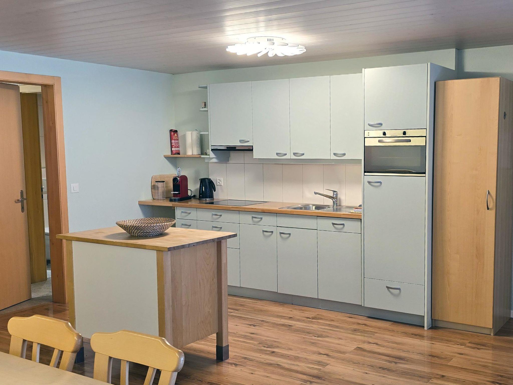 Bedroom: Double bed (2x100x200cm). Bedroom for children: 1 bunk bed (2x90x200cm) and 2 single beds (90x200cm). Living room: table, sofa, cable TV, radio, CD-player, DVD player. WiFi. Open-plan kitchen: dining table, dishwasher, oven, refrigerator with freezer, coffee machine, fondue- and raclette-set, electric kettle. Bathroom: A lot of space, new furniture. There is a store room available. Baby cot (60x120cm) incl. bed linen and highchair available.