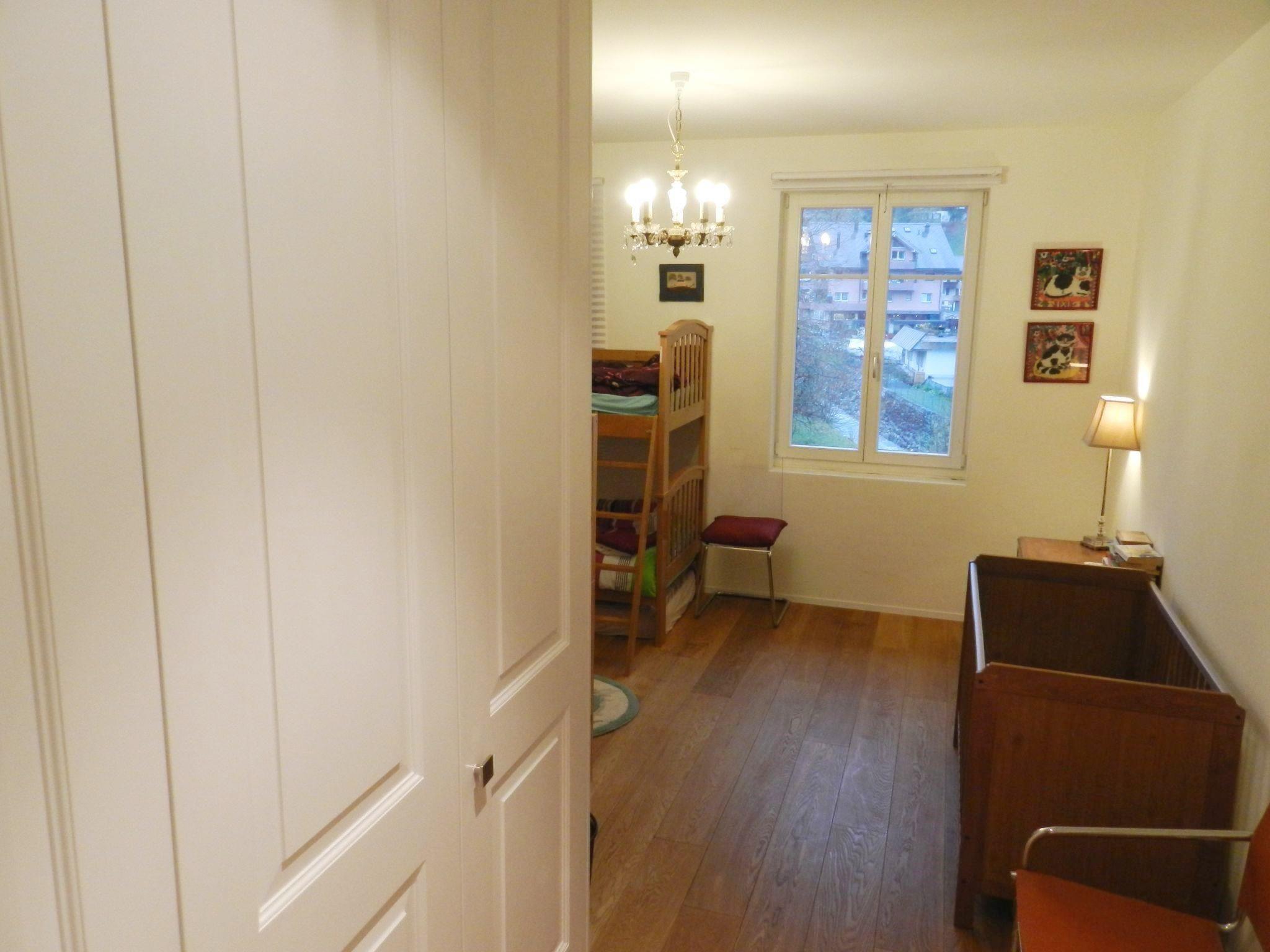 Charmingly furnished 5-room apartment (approx. 200m2) on the 2nd floor of an apartment building. 2 bedrooms 1x with super king size bed (180x200cm) and 1x king bed (150x200cm), wardrobe and a bathroom (1x shower/WC, 1x bathtub/WC). 1 bedroom with two bunk beds (90x200cm each) and an additional mattress and closet. 1 bathroom with shower/toilet. Spacious living room with sofa, TV, dining area as well as a large separate kitchen (equipped with oven, dishwasher, refrigerator and freezer, microwave oven, induction stove, coffee machine with capsules (Nespresso) as well as a fondue-set. Store room for skis, shoes and clothes. WiFi. Travel baby cot (60x120cm) and wood baby cot (70x140cm) incl. bed linen and highchair available.