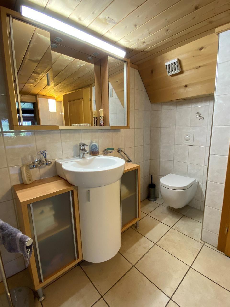 On the upper floor: lounge, bedroom with double bed, bedroom with 2 single beds, bathroom with washbasin / WC