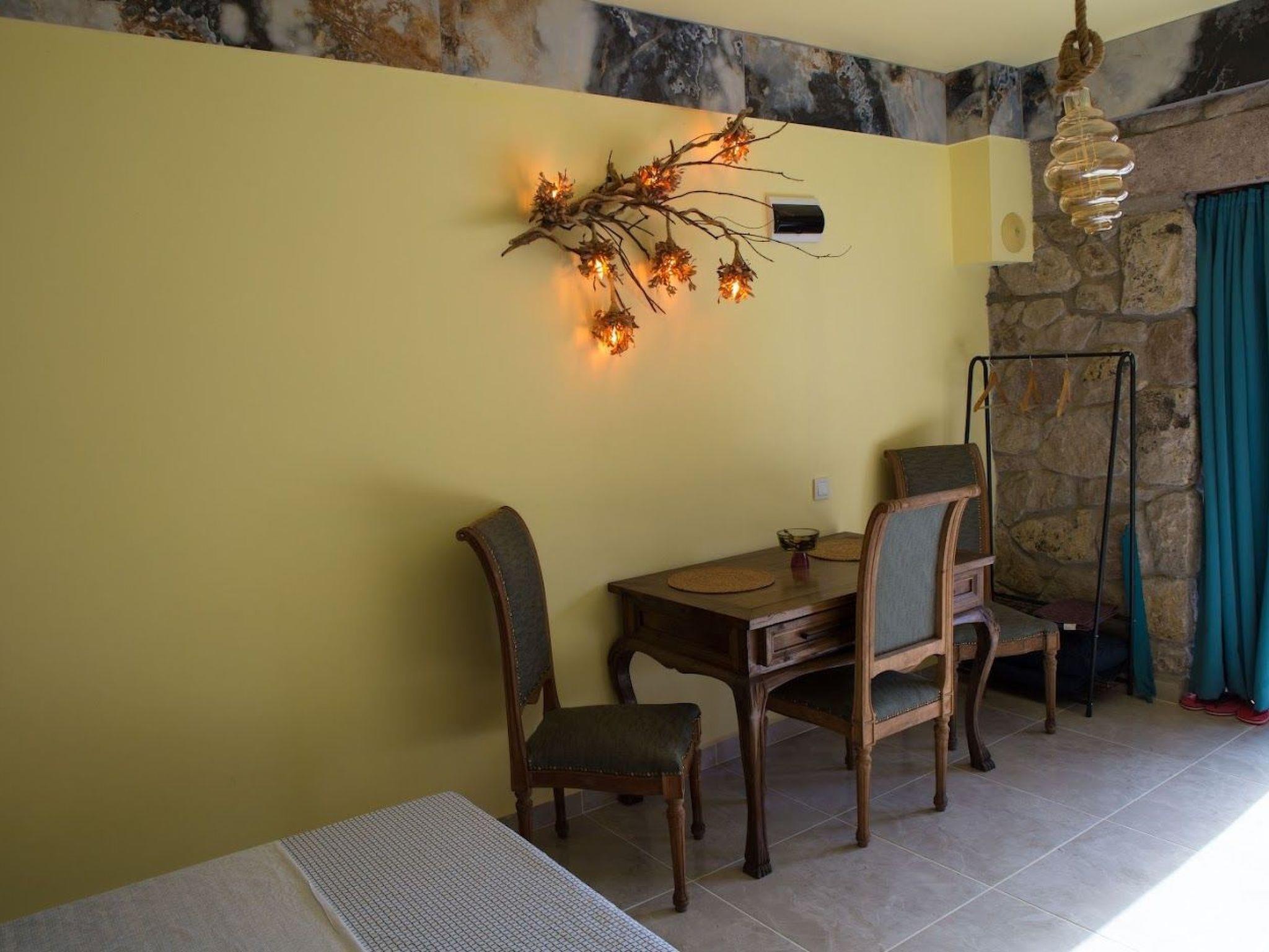 What makes this hotel so special is its unusual architecture and location. The rooms are very tastefully decorated. The distance to the sea is approx. 50 metres. A beautifully maintained olive grove, many natural stone walls, which are due to soil erosion, as well as the secluded location are to be emphasised. In addition, the lush nature of the surrounding area must also be mentioned. The house is situated between 2 beaches, one of which is sandy and the other pebbly,