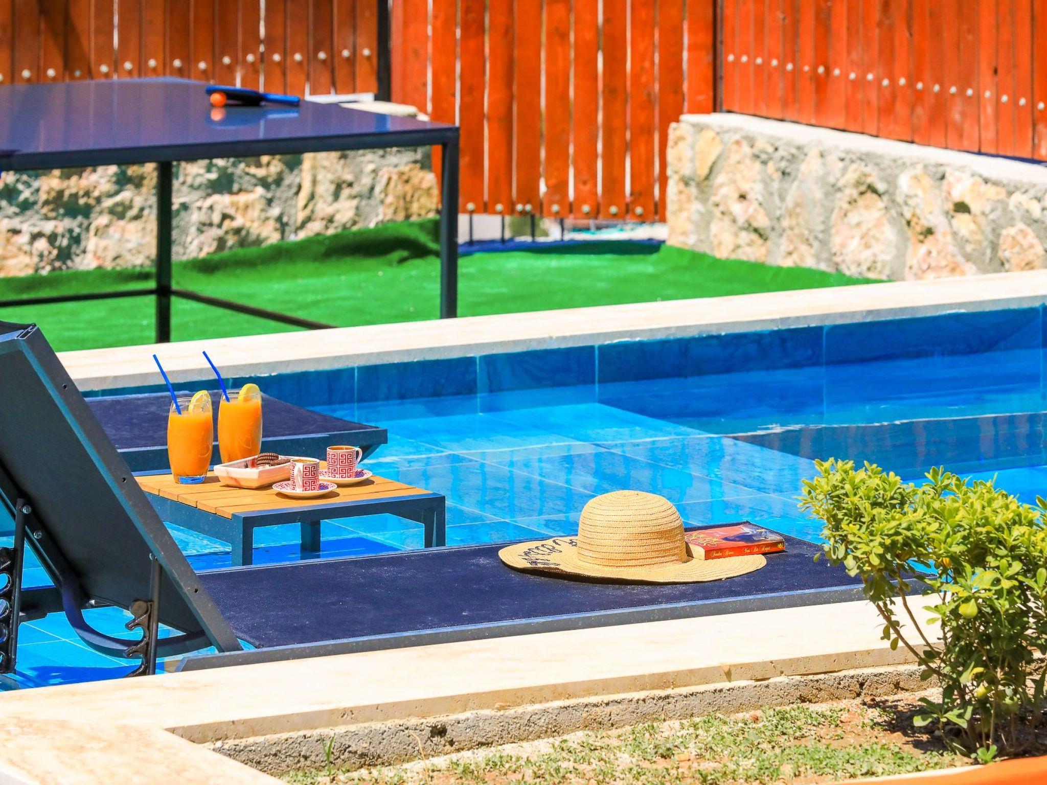 Discover the perfect holiday destination in Gelemis, Kas, Anatolia - our exclusive holiday flat, which can accommodate up to 4 people with its charm and comprehensive facilities. Away from the hustle and bustle of everyday life, this detached accommodation offers the ideal retreat for families or friends who value privacy and comfort. A private pool and a variety of amenities ensure that every day is a special experience. Look forward to undisturbed moments in an environment that invites you to relax and unwind.