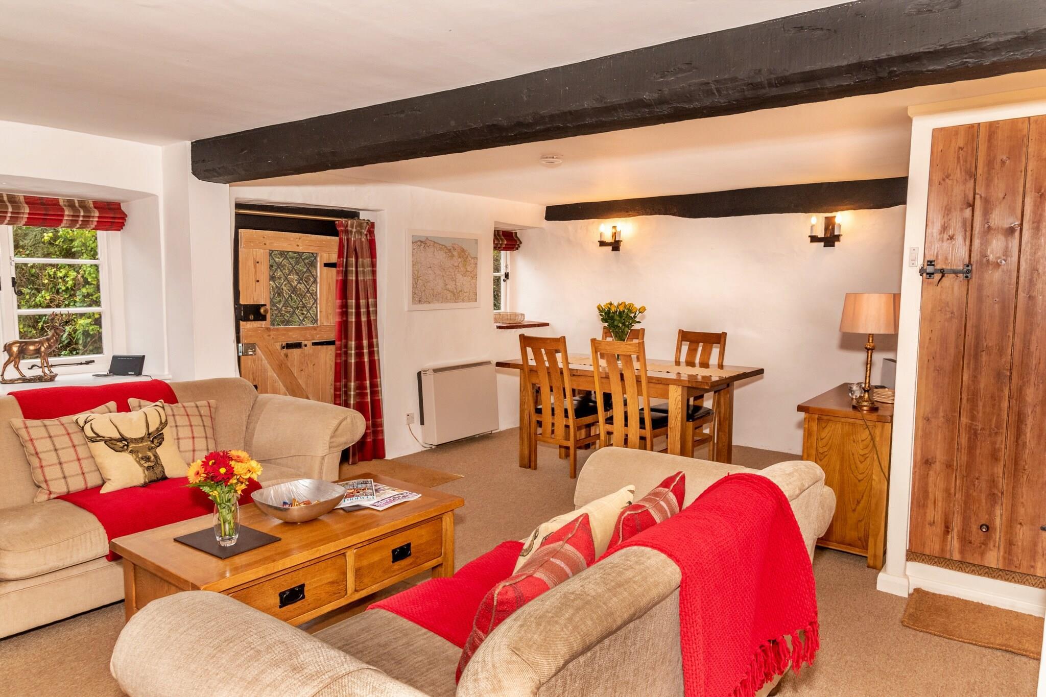 This charming thatched cottage, nestled in the quiet hill of Alcombe, offers a cozy retreat for up to four guests. With two double bedrooms, each featuring king-sized beds and vaulted ceilings, it is perfect for couples, friends, or small families. The property exudes character, with exposed beams and oak furniture, while modern amenities ensure a comfortable stay. Guests will enjoy the large living area with a gas-burning stove, ideal for chilly evenings, as well as a fully stocked kitchen with a dishwasher and washing machine. The recently renovated bathroom offers a spacious freestanding shower. The property is pet-friendly, allowing one well-behaved pet to stay, though they should remain downstairs and not be left alone. The cottage is ideally situated on the edge of Exmoor National Park, making it a perfect location for outdoor enthusiasts. With easy access to the South West Coast Path and many other hiking trails, guests can enjoy stunning countryside views and explore the surrounding area on foot. The town of Minehead, just a short distance away, offers a beautiful sandy beach, charming harbor, and a variety of independent shops, cafes, and family-friendly attractions. The picturesque village of Dunster, with its historic castle, and other nearby spots like Watchet and Porlock Weir provide additional sightseeing opportunities. Outside, the south-facing garden offers an excellent vantage point to take in the surrounding landscape, with a top terrace featuring outdoor furniture for guests to enjoy in the summer months. There is private parking for one car, and a second car can be parked nearby.