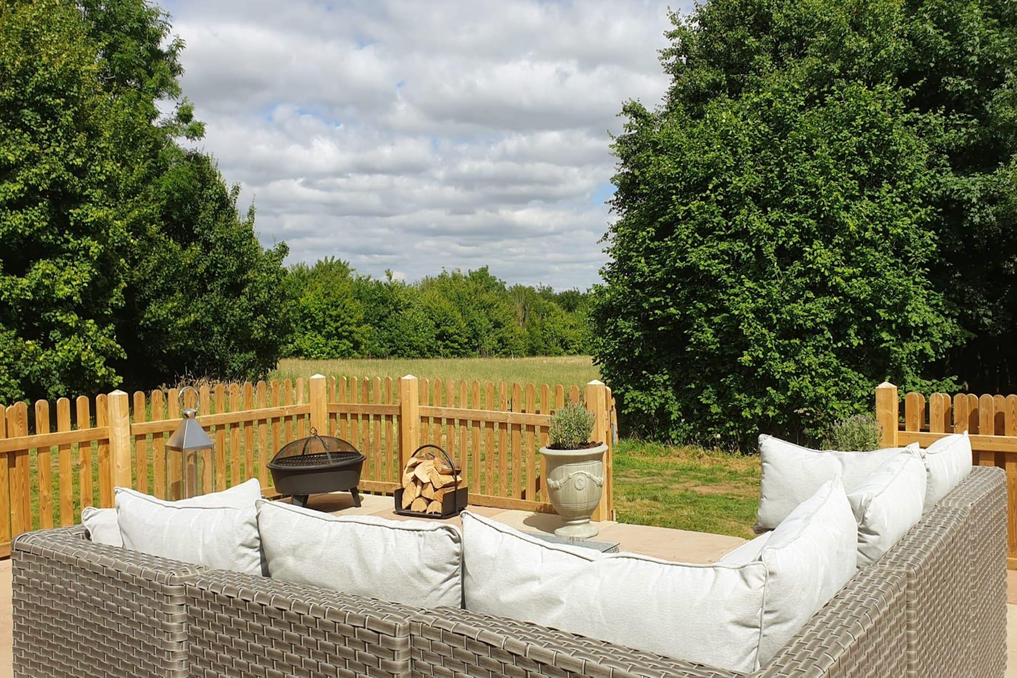 This luxury barn conversion, set in 7 acres of woodland and wildflower meadow, offers the perfect escape with breathtaking views of the Cambridgeshire-Suffolk border. Recently completed to eco-passivhaus standards, the barn is designed to keep you comfortable in both summer and winter. The open-plan interior features a light, airy space with charming old beams, a fully equipped kitchen, and a cosy lounge with views of the countryside and woodland. The kitchen is equipped to the highest standard with a full oven, induction hob, dishwasher, washer/dryer, fridge, and seating for four. The living room offers a velvet sofa and armchair, ideal for relaxing in front of the digital TV or listening to music through the sound dock. Doors open onto a spacious Indian sandstone patio with a stylish rattan garden sofa, perfect for lounging or enjoying a firepit in the evening. The master bedroom, with a king-size bed, offers a tranquil retreat with fresh pastel tones and its own private patio, while the twin room is designed with a blend of industrial style and natural elements. Both rooms feature luxury Silent Night Eco Mattresses for a restful night’s sleep. The luxury family bathroom includes a bath, waterfall shower, and heated towel rail. The barn also has a hairdryer and GHD hair straighteners for your convenience. The property also offers a range of activities, including exploring the private woodland, spotting wildlife such as hares, deer, and red kites, or taking a short drive to nearby attractions like the Linton Zoo, Duxford Imperial War Museum, and Cambridge. There are also plenty of walking and cycling routes in the surrounding area, including the famous Icknield Way trail. For those who prefer not to drive, the village of Balsham is just a short walk away, where you can enjoy a coffee at The Old Butchers, visit the village store, or explore the local 13th-century church. With a range of local pubs and cycling opportunities, this property offers a perfect base for a relaxing and adventurous getaway.