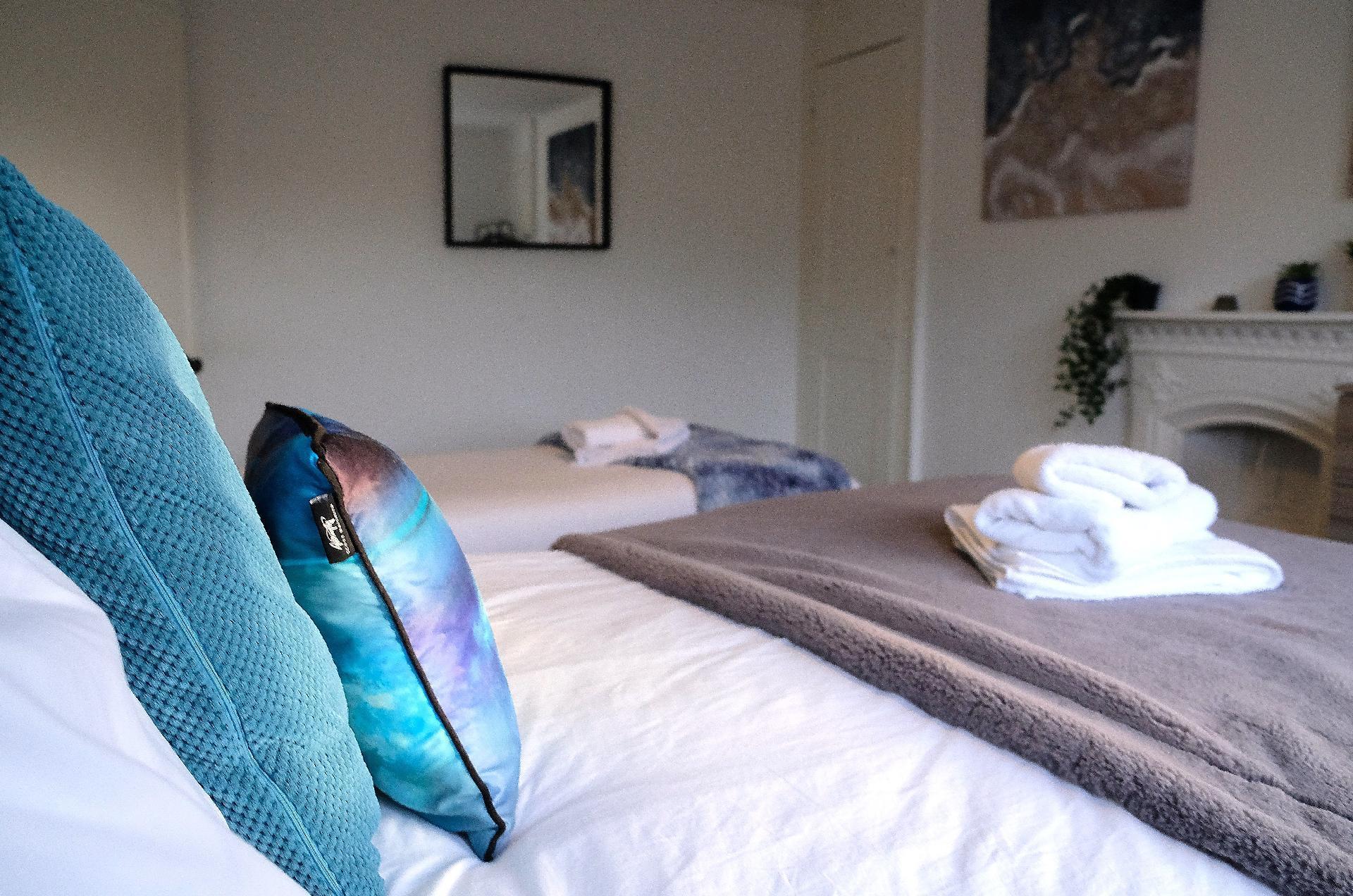 This spacious 3 bedroom apartment features 5 beds, great for group gatherings, students & contractors