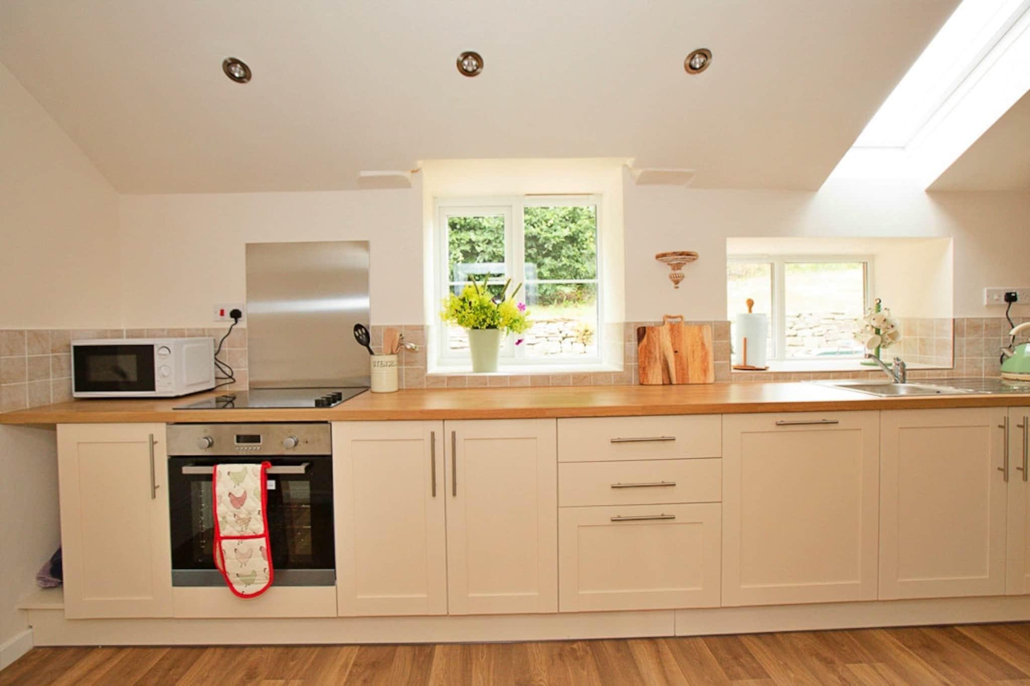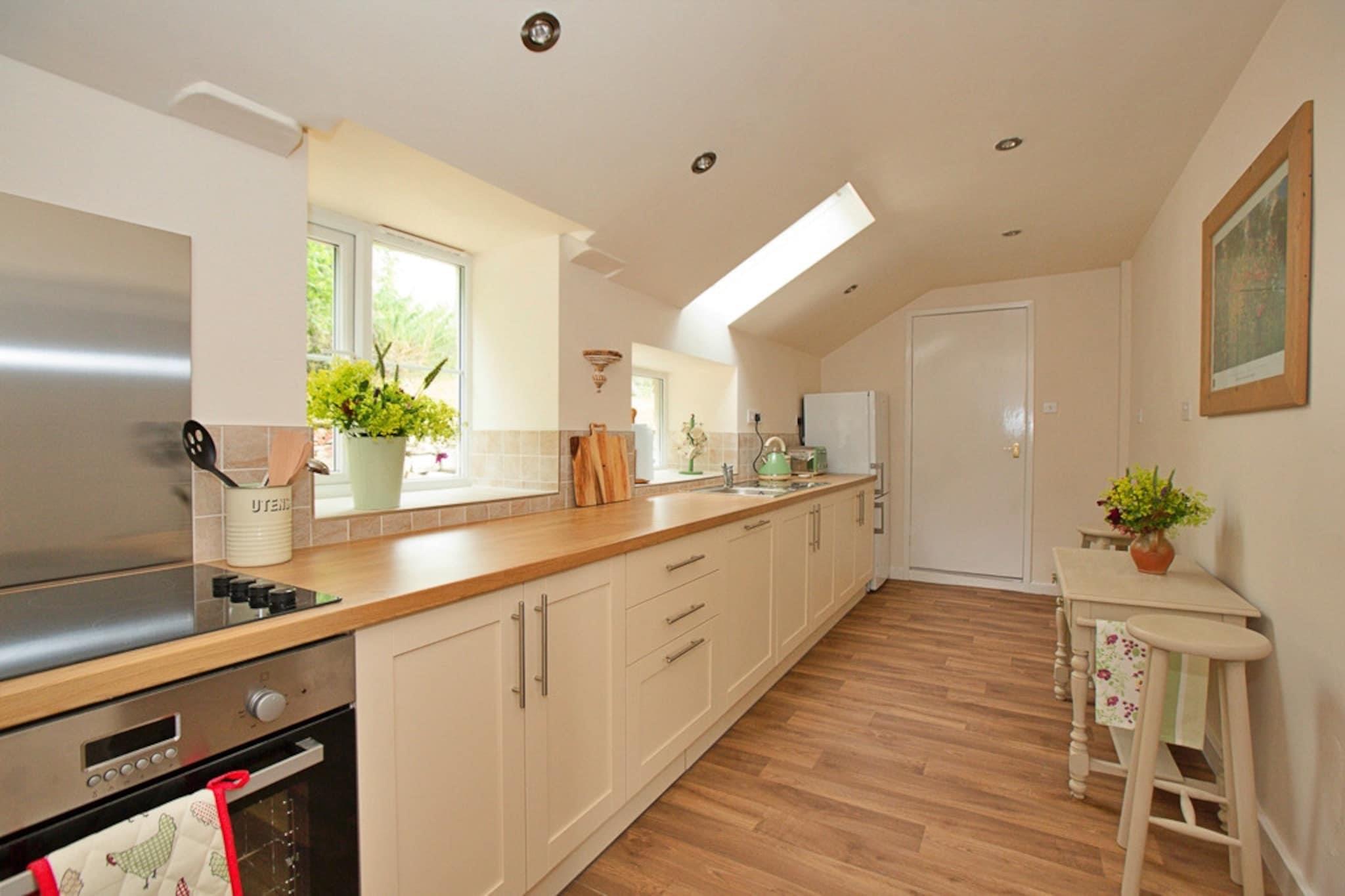This charming, pet-friendly holiday home offers a cozy retreat with comfortable sleeping arrangements for up to four guests. The property features two well-sized bedrooms, one with a king-sized bed and the other with two single beds. The spacious living room includes a sofa, providing a relaxing space to unwind. Additionally, the property offers a private garden with outdoor seating, perfect for enjoying sunny days. Pets are welcome for an additional fee, and guests can take advantage of various rental options, such as a high chair or cot. While there are no direct free activities provided, the natural surroundings make it ideal for outdoor exploration. Located in a tranquil rural area, the property is surrounded by breathtaking landscapes and scenic walking paths. The nearest town offers various attractions, including local markets, cafés, and a charming harbor. For those seeking adventure, several outdoor activities are available nearby, such as hiking and cycling. The nearest travel stations, including bus and train services, are within a short distance, making it easy to explore the region. The closest airport is also a convenient drive away, ensuring accessible travel options for guests. The holiday home comes fully equipped with a modern kitchen, featuring essential appliances such as a stove, oven, refrigerator, and dishwasher, making it perfect for self-catering stays. The property also includes a well-maintained bathroom with an electric shower and ample storage space. A washing machine is provided, allowing guests to enjoy the comfort of home during their stay. Additionally, free Wi-Fi ensures guests can stay connected throughout their visit.