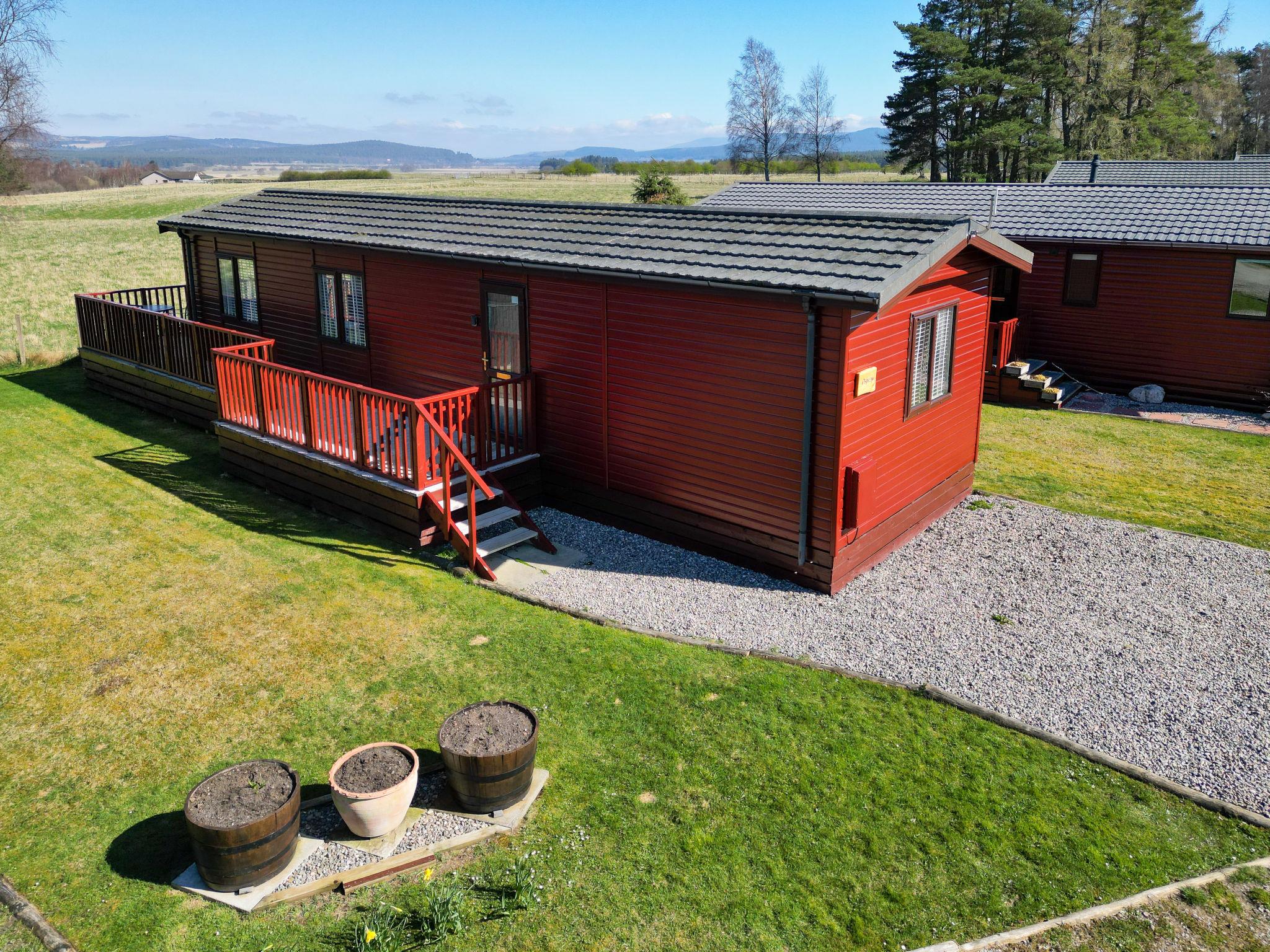 Cosy, comfortable chalet "Lodge 3", detached, surrounded by fields. On the outskirts, 2 km from the centre of Boat of Garten, 26 km from the skiing area. Private: patio, garden furniture. In the complex: washing machine (extra), tumble dryer (for shared use, extra). Parking at the house. Shop 2 km, supermarket 2 km, restaurant 2 km, bar 2 km, bus stop "Boat of garten" 2 km, railway station "Aviemore" 8 km. Nearby attractions: Cairngorm National Park, Highland Wildlife Park 23 km, Inverness 46 km, Landmark Adventure Forest Park 7 km, Highland Folk Museum 32 km. Well-known ski regions can easily be reached: Cairngorm Mountain 23 km, The Lecht Ski Centre 40 km. Well-known lakes can easily be reached: Loch Garten 1 km, Loch Morlich 18 km, Loch Ness 65 km. Please note: car recommended. Additional accommodations can be booked.