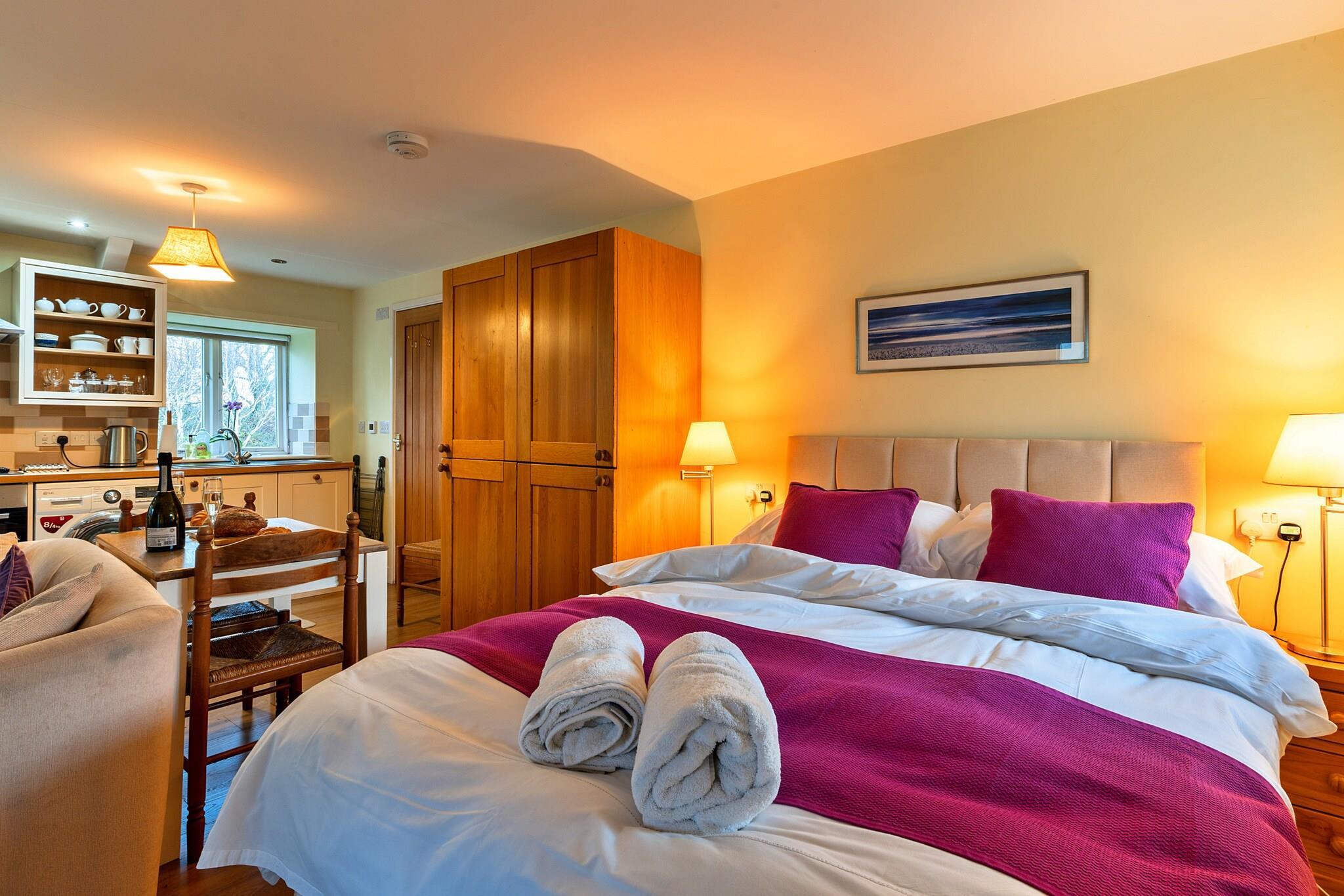This charming and cosy studio, nestled in the peaceful Cornish countryside, is perfect for a romantic getaway. Accommodating two guests, it offers a double bed in an open-plan layout, complete with underfloor heating for comfort. The studio also features a log burner for cosy evenings and a fully equipped kitchen with a microwave, fridge/freezer, and dining area. A private bathroom with a shower, WC, and basin is provided, along with Wi-Fi and a smart TV for entertainment. Guests can enjoy the serenity of the surroundings with a private outdoor seating area to relax and watch the local wildlife. Located near the picturesque village of Boscastle, this holiday home offers access to a variety of local attractions. Within a 10-minute drive, you can visit Tintagel Castle, steeped in history and legend. The stunning Cornish coastline is also easily accessible, with beautiful beaches such as Port Isaac, Polzeath, and Padstow just a short drive away. The area is ideal for walking enthusiasts, with sections of the famous coast path nearby, as well as traditional villages with a variety of cafes, pubs, and restaurants to explore. In addition to the well-equipped kitchen, the studio provides a comfortable, well-furnished living space. The private bathroom and laundry facilities, including a washer/dryer, ensure convenience during your stay. Bed linen, towels, heating, and internet access are included, while private off-road parking is available for guests. The accommodation also offers a delightful welcome gift of homemade scones, jam, and clotted cream, making it a perfect place to relax and unwind.