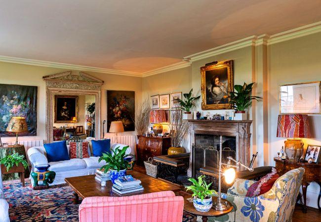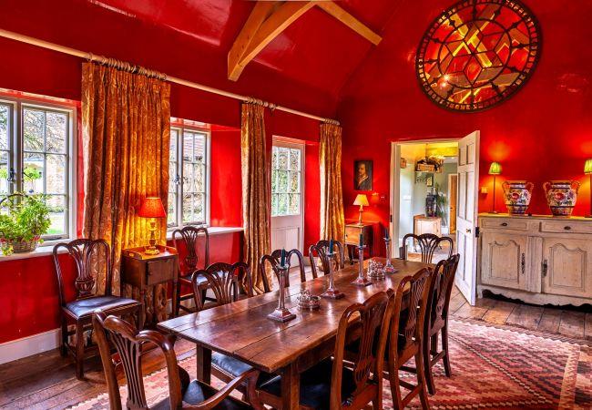 The house is welcoming, warm and cosy. Cool in summer yet cosy in winter. It is centrally heated throughout, with additional open fires or wood burning stoves in all the reception rooms. An elegant formal drawing room, a dramatic dining room seating 20, a huge farmhouse kitchen and a 'playroom/TV room' for games or sneaking away for some quiet time.