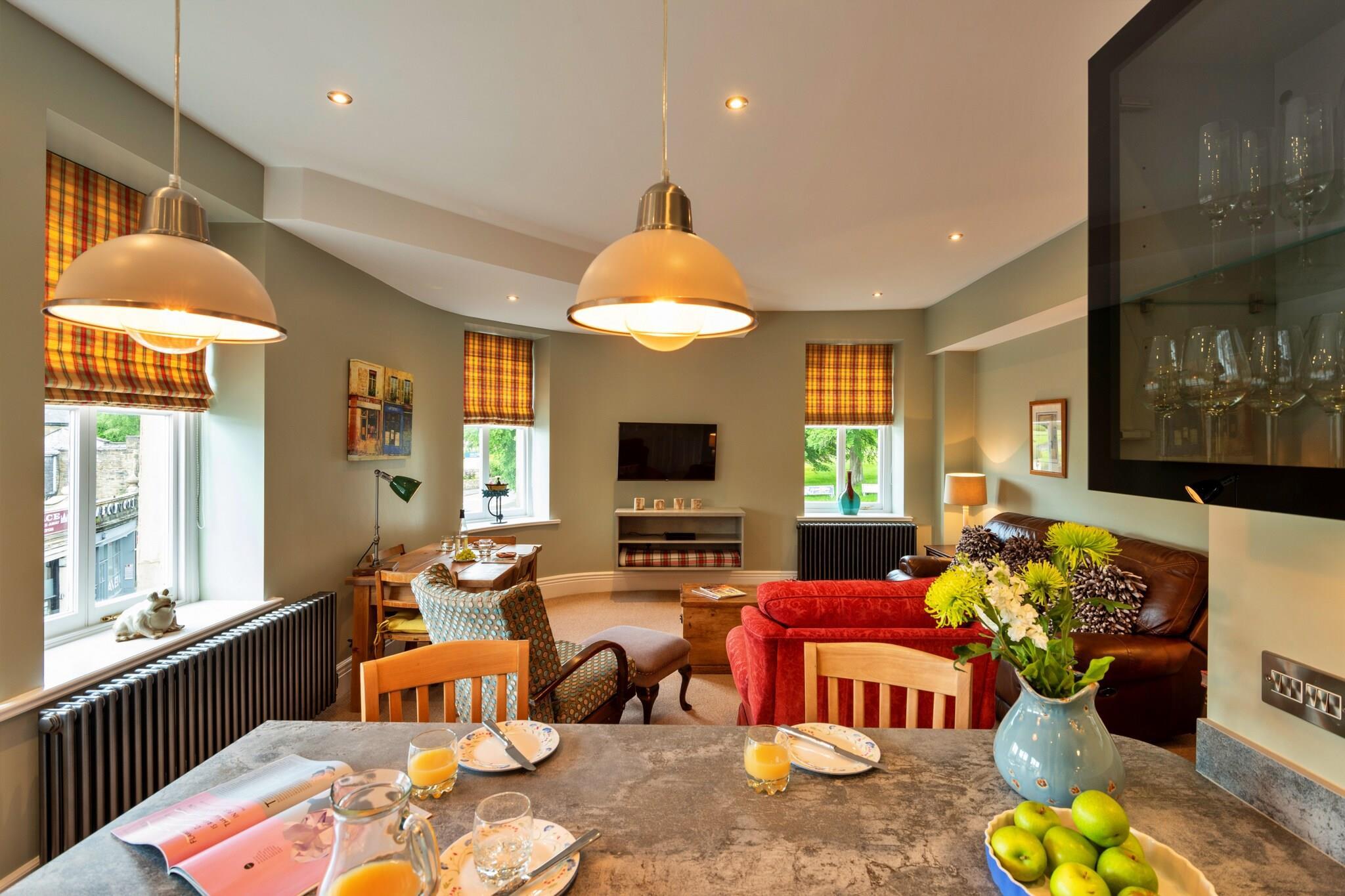Located in the heart of Buxton’s historic spa town, The Old Post Office is a beautifully renovated Grade II Victorian building that combines historic charm with modern luxury. Originally built in the mid-1800s as apartments before serving as the town’s Post Office, the building now offers a collection of elegant apartments, each preserving subtle hints of its rich past. Apartment Two, situated on the second floor, has been carefully furnished to ensure a comfortable and relaxing stay. The spacious open-plan living area features a dining space conveniently positioned between the kitchen and sitting room. Entertainment amenities include a 43" Freeview Smart TV, DVD player, CD player, and free Wi-Fi, making it easy to unwind after a day exploring Buxton. The fully equipped kitchen provides everything needed to prepare delicious meals or a special family feast, with a selection of tea, coffee, and milk ready for your arrival. Both bedrooms are decorated to a high standard, each with a king-sized bed, Freeview TV, and luxurious en-suite bathroom. One en-suite features a walk-in shower and toilet, while the other includes an additional bathtub, perfect for relaxing baths. An extra separate toilet is located in the hallway for added convenience. Guests benefit from a free on-site parking space, with additional parking available nearby for a small fee, just a two-minute walk away. Whether exploring Buxton’s historic sites, enjoying its vibrant culinary scene, or simply relaxing in this stylish apartment, The Old Post Office provides the ideal base for your visit. For larger groups, all three apartments can be booked together to accommodate up to 14 guests—search for 'The Old Post Office Apartments.'