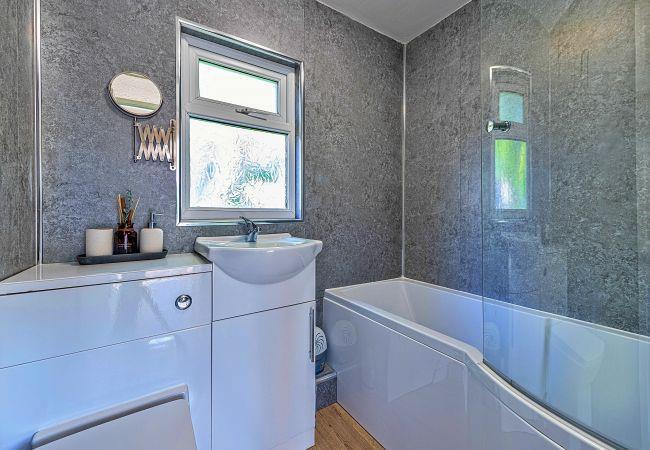 The chalet can accommodate up to five guests, over two bedrooms. One double bedroom with wardrobe space and TV, the second bedroom with a bunk bed (single on top, and double on bottom) to sleep up to three. You will find a family bathroom with shower over bath, WC and basin.