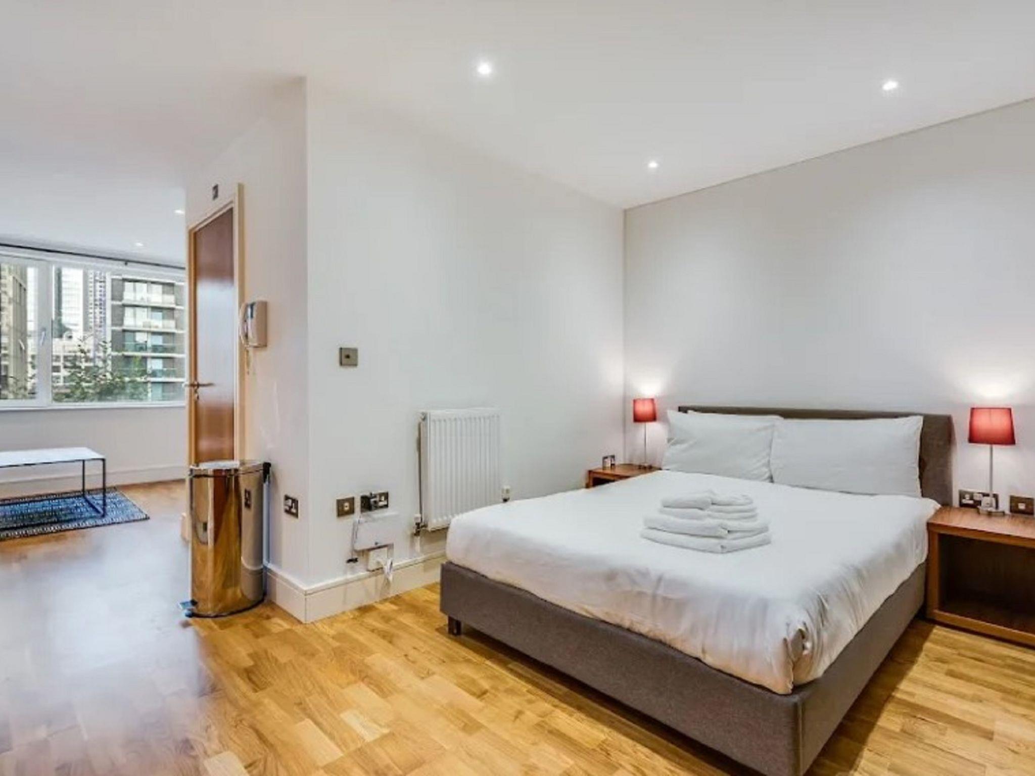Modern apartment block. On the outskirts, 2 km from the centre of Canary Wharf, in a central position. In the house: reception, restaurant, bar, bistro, internet access, WiFi, shopping facilities, lift, central heating system, laundry (extra). Room cleaning weekly (included). Bus stop "Hutchings Street" 1 km, railway station "Canary Wharf" 2 km, underground station "Canary Wharf" 2 km. Nearby attractions: Billingsgate market 2 km, O2 Arena 4 km, London Eye 9 km, Greenwich market 8 km, Tower of London & Tower Bridge 5 km, Buckingham Palace 10 km. Please note: baby equipment on request (extra). The photograph shows a typical example. The holiday properties may differ in living space, floorplan, equipment and furnishing.