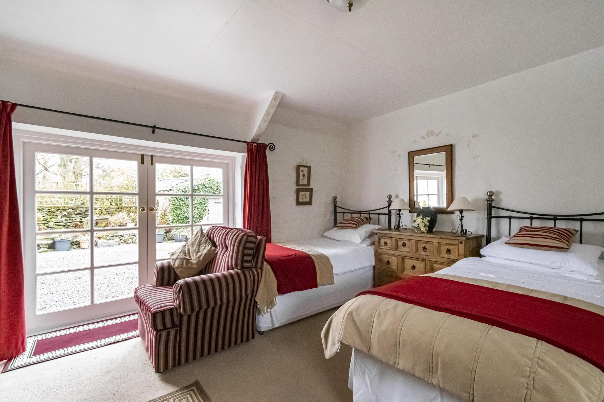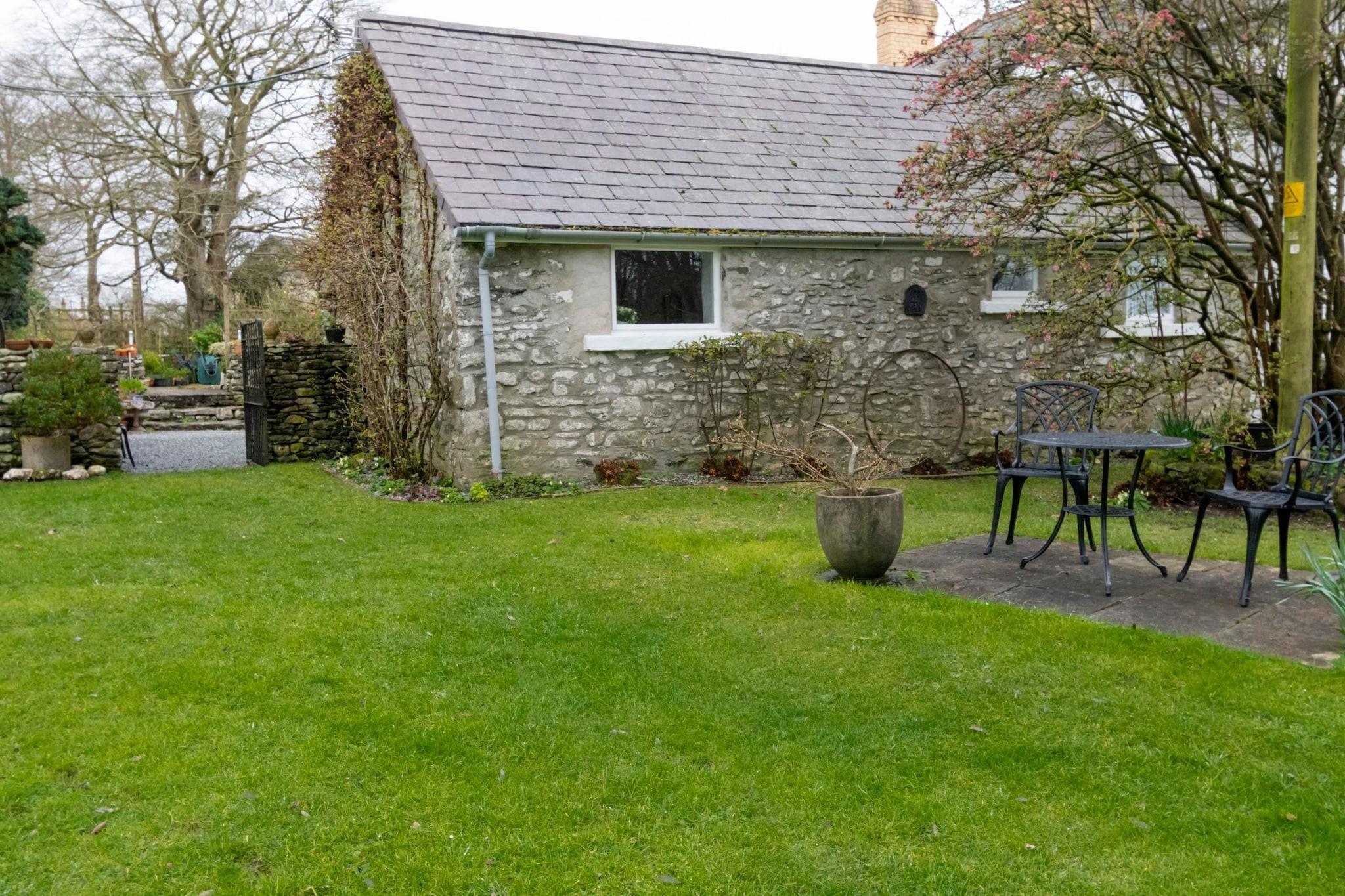 Ground floor: (Kitchen(dining table, electric kettle, toaster, cooker(4 ring stoves, electric), oven, microwave, fridge), Living/bed room(2x single bed, TV, seating area, DVD player, gas fireplace), bathroom(shower(unit), washbasin, toilet)) heating(electric), garden, garden furniture, parking, pond