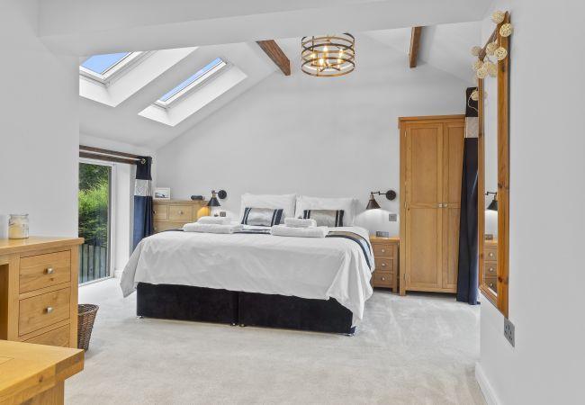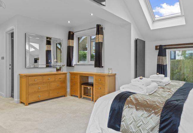 Upstairs, there are three beautifully appointed bedrooms. The spacious master bedroom boasts a super king bed and a superb balcony overlooking Dale View and Harris Park. It’s the perfect spot to watch the sunset, with a table, chairs, and an infrared heater for chillier evenings. The en-suite bathroom features a shower, toilet, sink, heated towel rail, and underfloor heating.