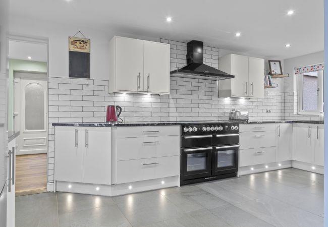 On arrival head into the inviting lounge featuring large windows with a view, Smart TV and 3-seater electric reclining sofa. The property has good Wi-Fi throughout the property. The spacious, contemporary-styled open-plan kitchen and dining area are perfect for preparing meals and spending quality time together. Equipped with all modern amenities for an easy self-catered stay, the kitchen includes a dishwasher, 5-ring induction hob, double electric oven, grill, slow cooker and large fridge-freezer.