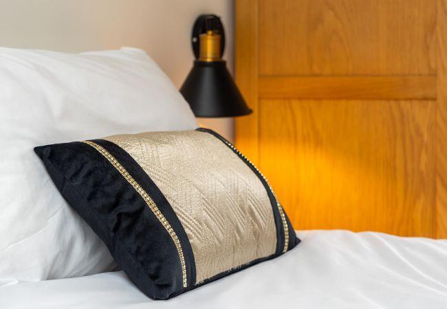 The second bedroom offers a comfortable double bed, while the third bedroom includes two single beds that can be configured into a king upon request. There is also a family bathroom featuring a shower, luxurious bath, toilet, sink, heated towel rail, and underfloor heating.