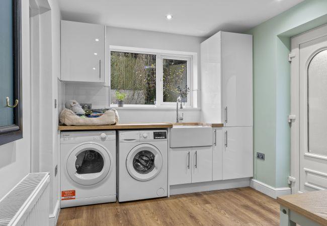 The home is fully equipped with all modern conveniences for a comfortable self-catered stay. Just off the kitchen, the large utility/boot room features a Belfast sink, washer and dryer perfect for cleaning muddy boots after exploring the stunning Cumbrian countryside. For added convenience, the ground floor also includes a WC.
