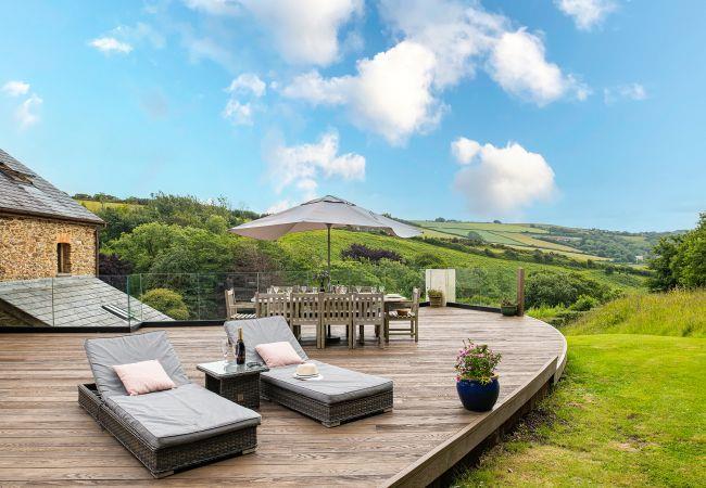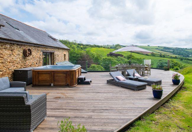 Its showpiece is the expansive new deck, complete with a luxury hot tub, garden seating, sun loungers, and an outdoor dining area, all overlooking Coulscott’s lush green valley. It’s the ideal spot to unwind after a day exploring the coast and countryside, whether soaking in the warm bubbles or relaxing with a drink in hand.