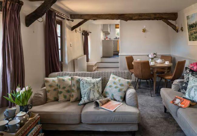 Outside, the cottage enjoys its own private lawn and patio, furnished with garden seating and a barbecue—an ideal spot for relaxed outdoor dining in complete seclusion.