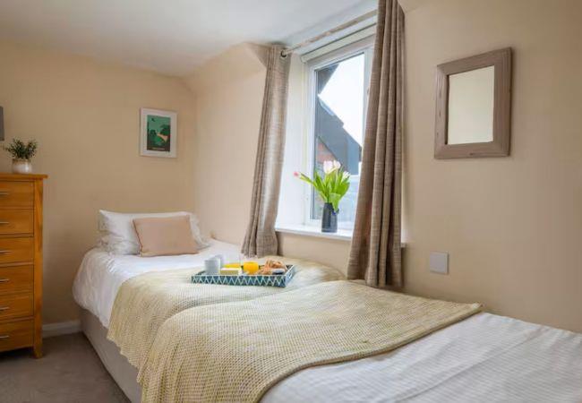 Upstairs, you’ll find a stylish bathroom and two inviting bedrooms. The master bedroom offers a king-sized bed with breathtaking valley views, while the second bedroom has twin beds and looks out over the peaceful garden.