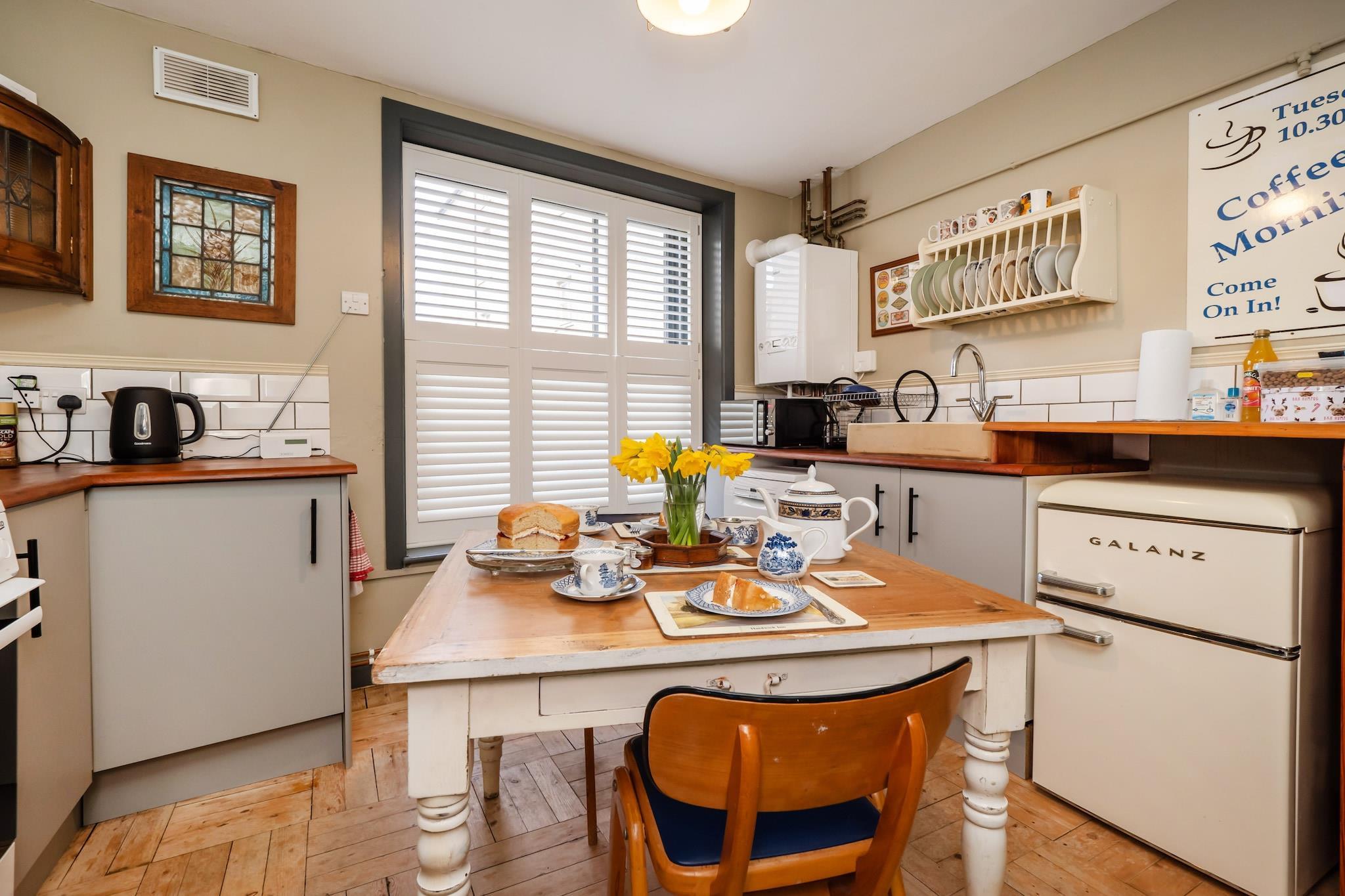 This distinctive Grade II Listed property offers a unique stay in a renovated townhouse adjacent to a historical chapel in Cromer, Norfolk. The cottage accommodates up to two guests with a cozy double bedroom located on the top floor, complete with an expansive bay window offering partial sea views. The middle floor features a relaxing lounge, and the ground floor includes a well-equipped kitchen styled with a vintage 1940s and 50s aesthetic, along with a shower room and toilet. Guests also have access to the chapel's lounge area during the daytime, though access to the mezzanine is restricted. Pets are welcome for an additional fee, making it an ideal choice for those traveling with their furry companions. Located just moments from Cromer’s sandy beaches, this property provides an ideal base for exploring the town and surrounding Norfolk Coast. Cromer is known for its rich history, quirky shops, and museums, with the famous Banksy artwork nearby. The coastal area offers opportunities for surfing, scenic walks along the Norfolk Coast Path, and visits to local landmarks. Guests can also enjoy the lively pier and vibrant atmosphere of the town. On-street parking is available for convenience, and the town’s amenities are easily accessible for a full seaside experience. The townhouse is designed for a self-catered stay, featuring a fully equipped kitchen with all essential appliances. The shower room is on the ground floor, offering convenience for guests. Heating is included for added comfort, and there is a TV for entertainment. Though the property does not have Wi-Fi, it provides excellent mobile data reception. A refundable security deposit is required, and there is an additional charge for pet accommodation.