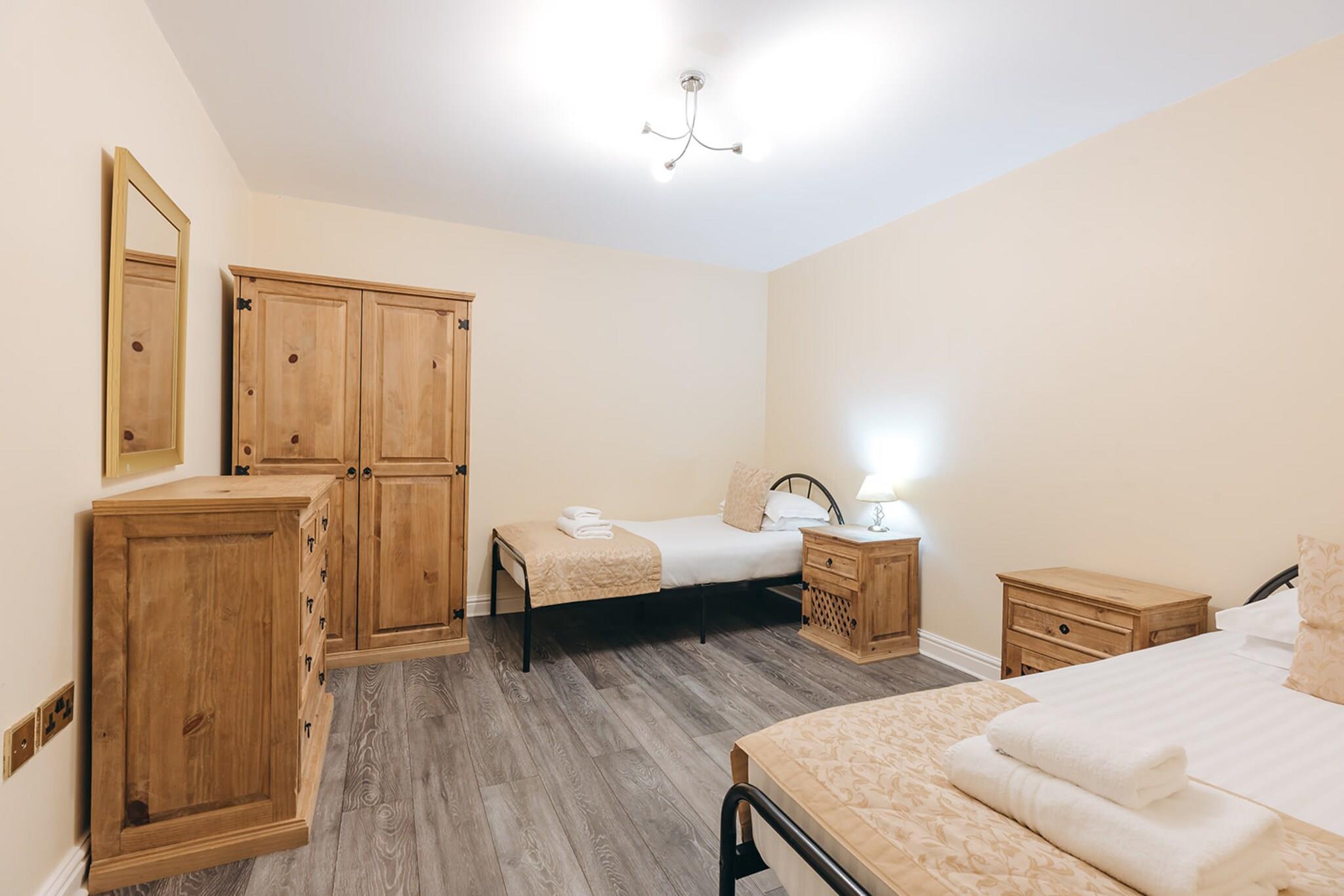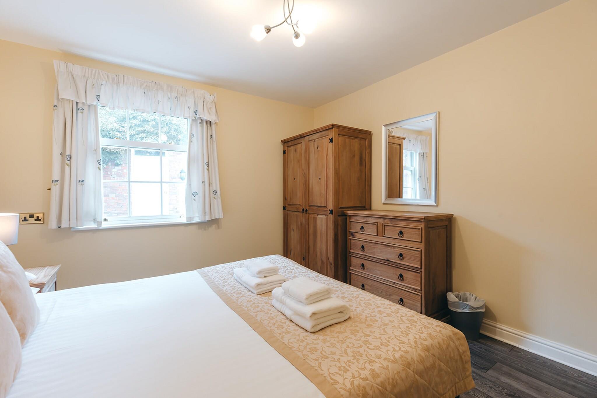 This charming 2-bedroom cottage provides a cozy and inviting retreat for up to four guests. The cottage features a master bedroom with a comfortable double bed and a second bedroom with two twin beds, perfect for children or extra guests. The living area is designed for relaxation with comfortable seating and a flat-screen TV, ideal for unwinding after a day of exploration. A modern kitchen, fully equipped with appliances and ample countertop space, is adjacent to the dining area, perfect for enjoying home-cooked meals. Complimentary Wi-Fi and private parking add convenience, while the property’s pet-friendly nature ensures your furry companions are welcome. Nestled within the peaceful grounds of Netley Hall, the cottage offers easy access to scenic walking trails, lush gardens, and a range of recreational activities. The serene surroundings make it an ideal location for nature lovers, offering opportunities for outdoor adventures and relaxation. Dorrington provides a tranquil atmosphere and is well-located for exploring nearby attractions and cultural sites. Whether you're looking to hike, visit local museums, or simply relax, this area provides the perfect balance of peace and adventure. The cottage comes with modern amenities to ensure a comfortable stay, including a well-equipped kitchen, a family bathroom, and ample storage. The kitchen allows for easy meal preparation with modern appliances, while the dining area serves as the perfect setting for family gatherings. Guests can also enjoy the fresh countryside air in the property's garden, providing a peaceful spot to unwind and enjoy the natural beauty of the location.