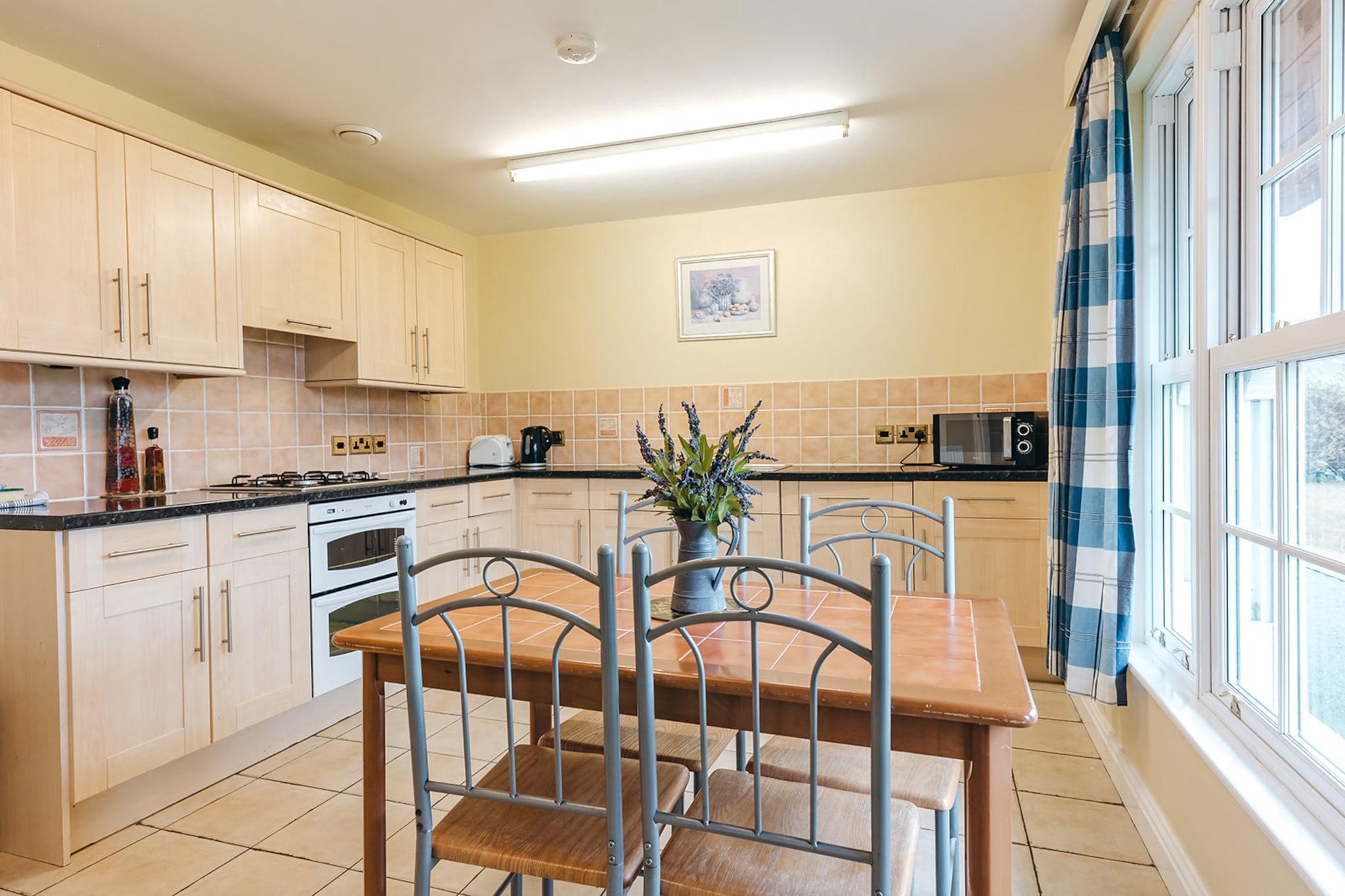 This peaceful and pet-friendly 2-bedroom cottage offers a relaxing escape for up to four guests. The master bedroom features a comfortable double bed, while the second bedroom is furnished with two cozy single beds, making it perfect for families or small groups. The cottage includes modern amenities such as a flat-screen TV, free Wi-Fi, and private parking. The inviting living area is ideal for unwinding, and the spacious kitchen, equipped with modern appliances, provides everything needed for preparing delicious meals. Access to the surrounding grounds and walking trails enhances the outdoor experience, making this an ideal place for nature lovers. Located within the tranquil grounds, the cottage offers a serene environment perfect for a peaceful retreat. Guests can explore nearby countryside trails, visit gardens, and enjoy recreational activities within the grounds. The property is also well connected to transportation options, with access to local buses and train stations nearby. Local cafes, markets, and cultural attractions provide ample opportunities to explore the area’s charm and enjoy local cuisine. The cottage’s fully equipped kitchen ensures convenience, allowing guests to prepare home-cooked meals. It also includes a charming dining area, perfect for meals with family or friends. The bathroom features essential amenities, and the property includes linens, towels, heating, and final cleaning to ensure a comfortable stay.