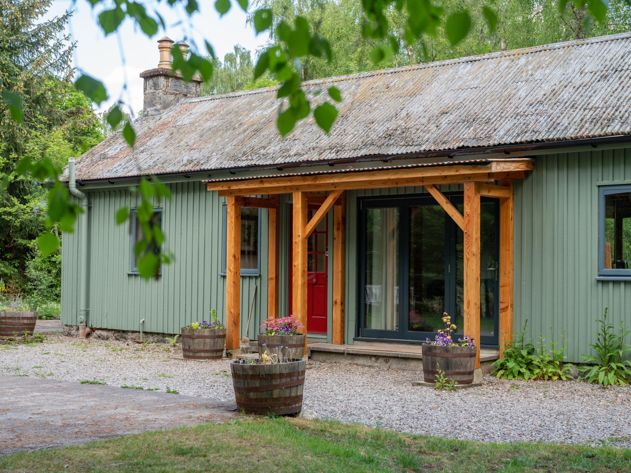 Cannich 22 km from Drumnadrochit: Cosy, comfortable chalet "Fishermans Riverside Combi", detached. In a secluded, quiet position, 10 m from the river. For shared use: hot tub. Private: natural garden. Hot tub, parking at the house. Shop 3 km, grocery 3 km, supermarket 40 km, restaurant 15 km, bus stop 400 m, railway station "Inverness" 40 km. Golf course (18 hole) 30 km, riding stable 20 km, fishing possibilities 10 m. Nearby attractions: Loch Affric 15 km, Plodda Falls 8 km, Trout Fishing 10 m, Loch Ness 25 km, Urquhart Castle 25 km, Kyle Of Lochalsh - Isle of Skye 110 km. Please note: car recommended. Additional accommodations can be booked. The listing consists of 2 separate properties a 1 minute walk away from each other.