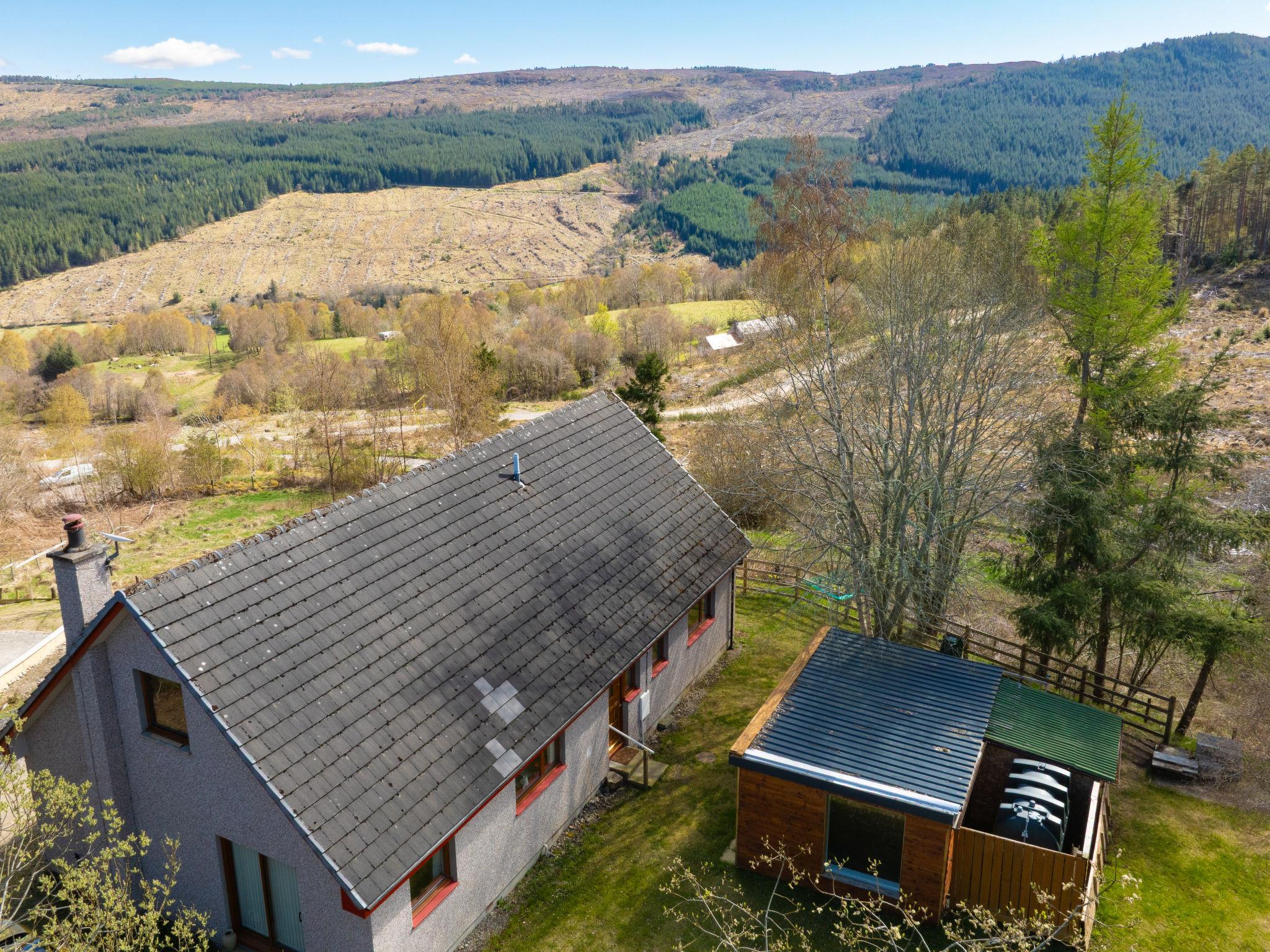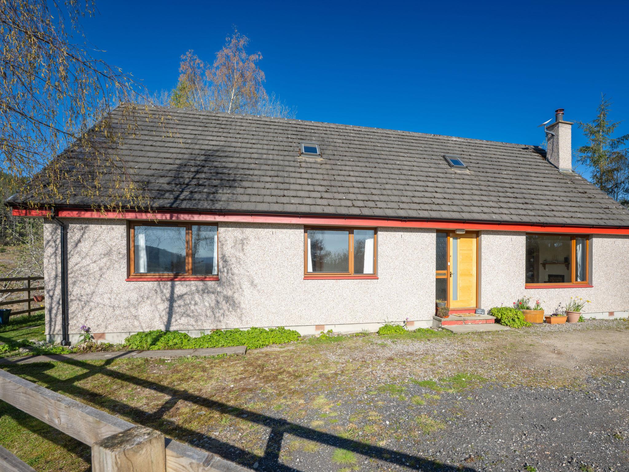 Rychraggan 8 km from Loch Ness: Modern, cosy bungalow "The New House", detached, surrounded by trees. On the outskirts, 5 km from the centre of Drumnadrochit, in a secluded, quiet, elevated position on top of a hill, 5 km from the lake. Private: garden (not fenced). Patio. Pre-arrival grocery service. Parking at the house. Shop 5 km, grocery 5 km, supermarket 32 km, restaurant 5 km, bar 5 km, bus stop "Drumnadrochit Village Green" 5 km, railway station "Inverness" 32 km. Golf course (18 hole) 31 km, riding stable 12 km. Nearby attractions: Urquhart Castle 8 km, Glen Affric 22 km, Loch Ness Monster exhibition 5 km. Well-known lakes can easily be reached: Loch Ness 5 km. Hiking paths: Great Glen Way - Inverness 5 km. Please note: car recommended. Suitable for families, baby equipment on request (extra).
