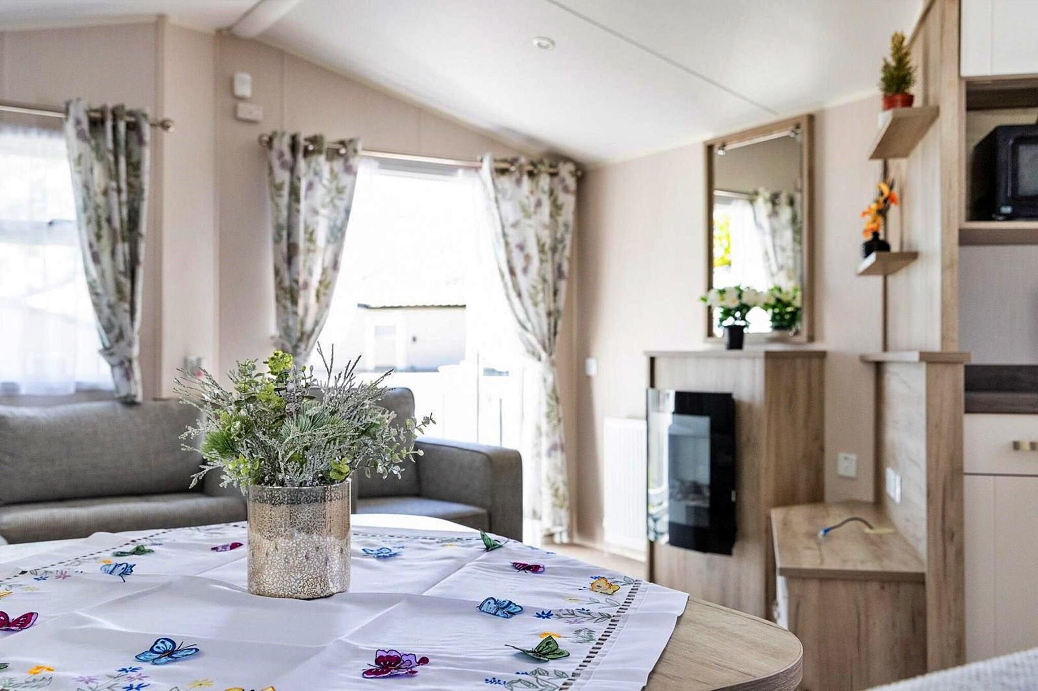 Nestled within the peaceful Thorness Bay Park, this spacious mobile home offers the ideal escape on the Isle of Wight. Perfect for families or groups, it comfortably accommodates 6-8 guests with three cozy bedrooms, including one double and two twin rooms, plus an additional sofa bed in the living area. Guests can unwind in the open-plan kitchen and living space or enjoy a sunset on the wraparound porch. On-site amenities include a swimming pool, water slide, arcades, a play area, and an on-site bar and restaurant. Access to these facilities requires an additional pass available at reception. Please note, pets are not permitted. Located on the scenic Isle of Wight, Thorness Bay Park is a short drive from the charming town of Cowes and local landmarks like Carisbrooke Castle. The island is known for its beautiful beaches, nature reserves, and outdoor activities, including hiking and exploring historical sites. A minimart is on-site for everyday essentials, and a laundry service is available for guest convenience. The mobile home is well-equipped with a kitchen featuring an electric cooker, fridge/freezer, and microwave. The main bathroom offers a shower, WC, and basin, while the master bedroom includes an en-suite for added comfort. The park is ideally situated for a range of outdoor adventures, from relaxing on the beach to exploring the island's rich maritime heritage.