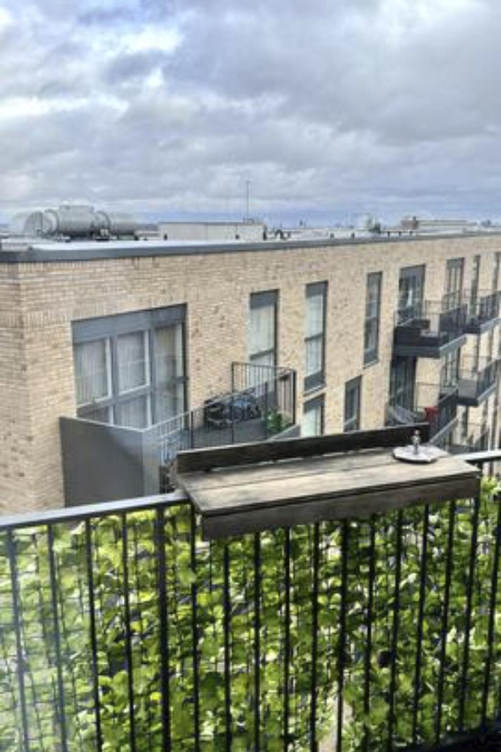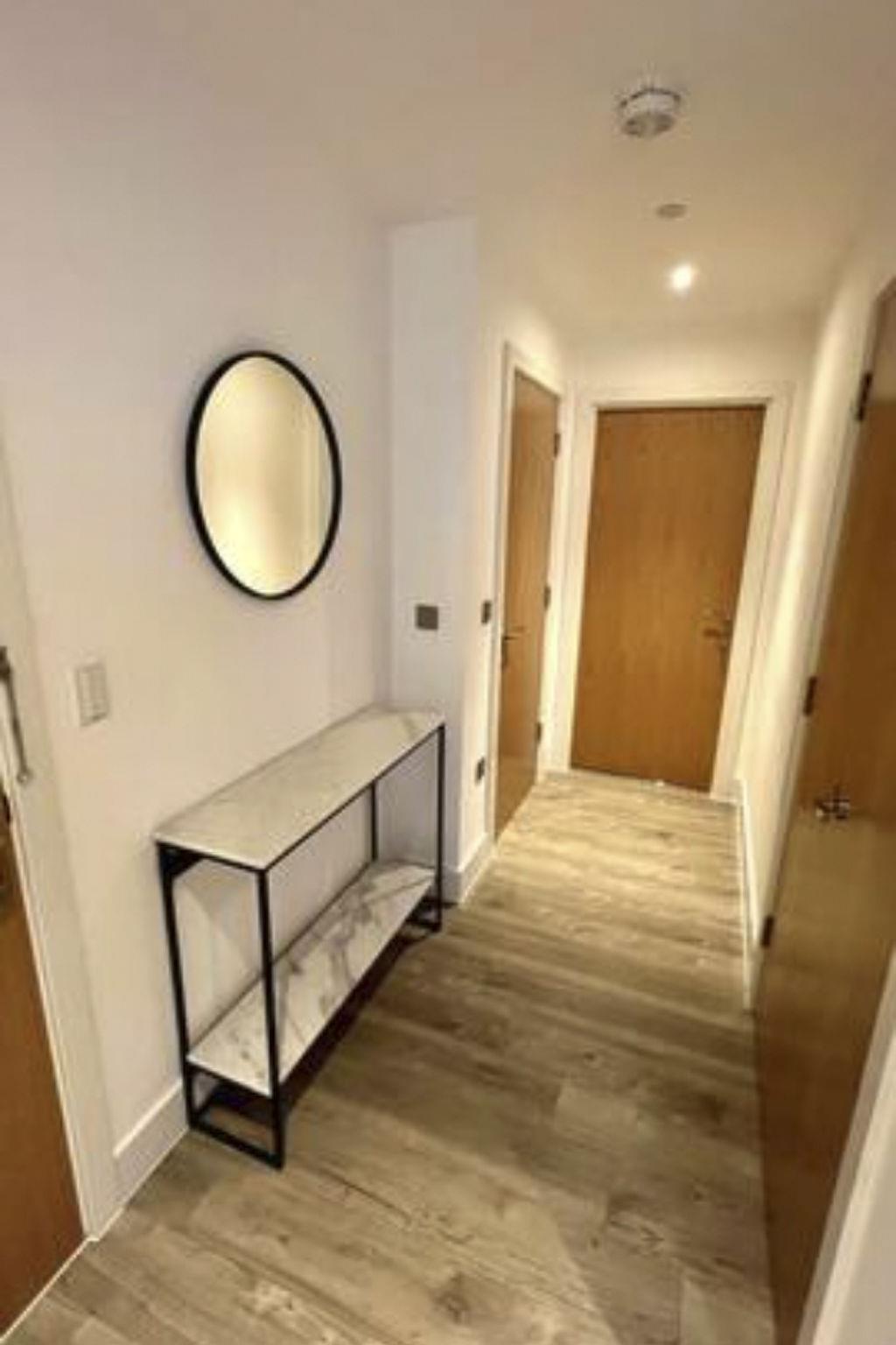 A communal green area with children's playground is within the deveopment. The apartment also has it's own balcony, with fantastic views over the London skyline