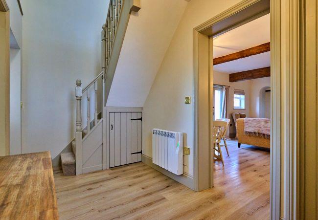 Outside, the courtyard is furnished with garden furniture, offering a relaxing outdoor space. Guests also have access to a shared 2-acre paddock, which includes an unfenced pond approximately 100 yards away. Private parking is available for two cars.