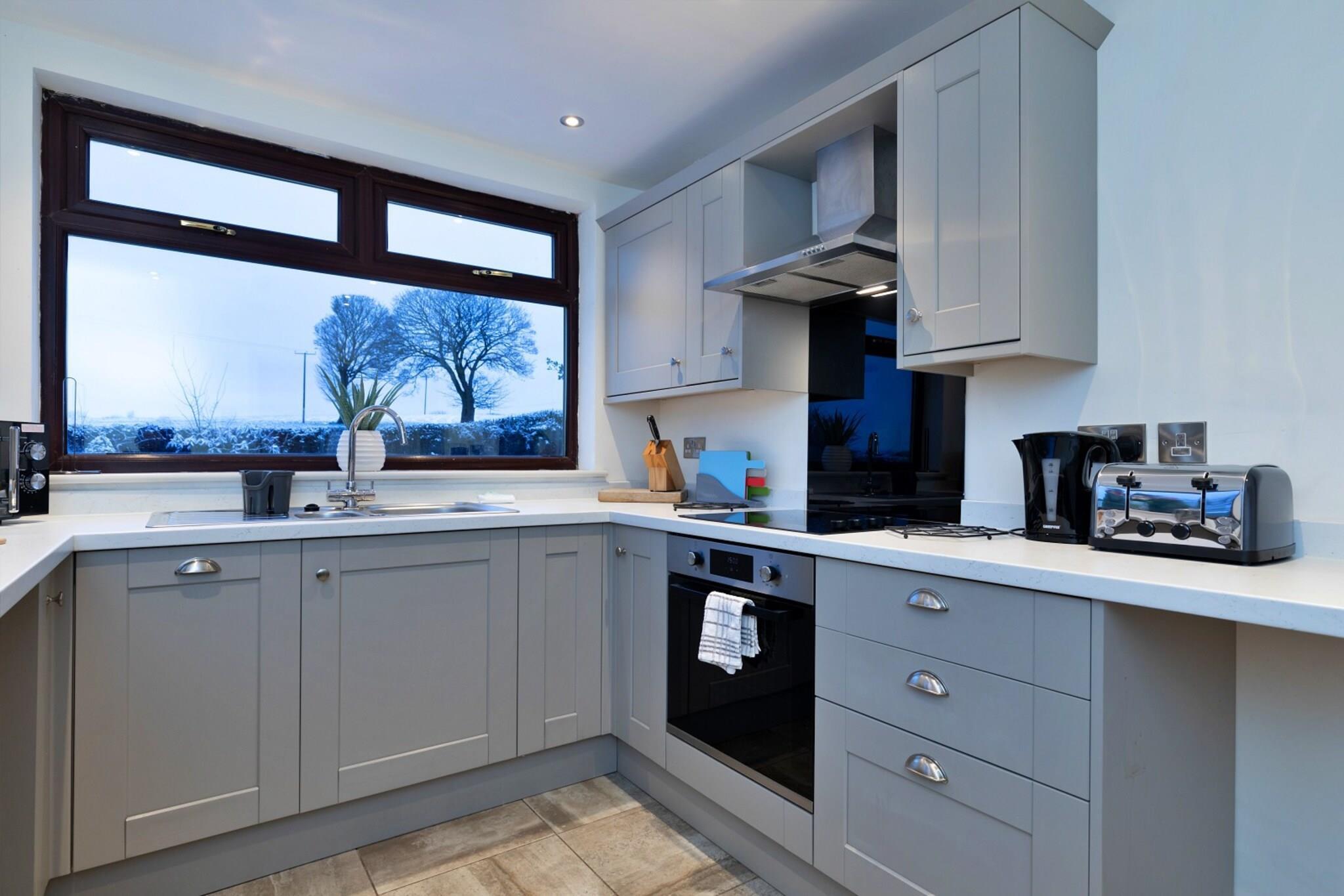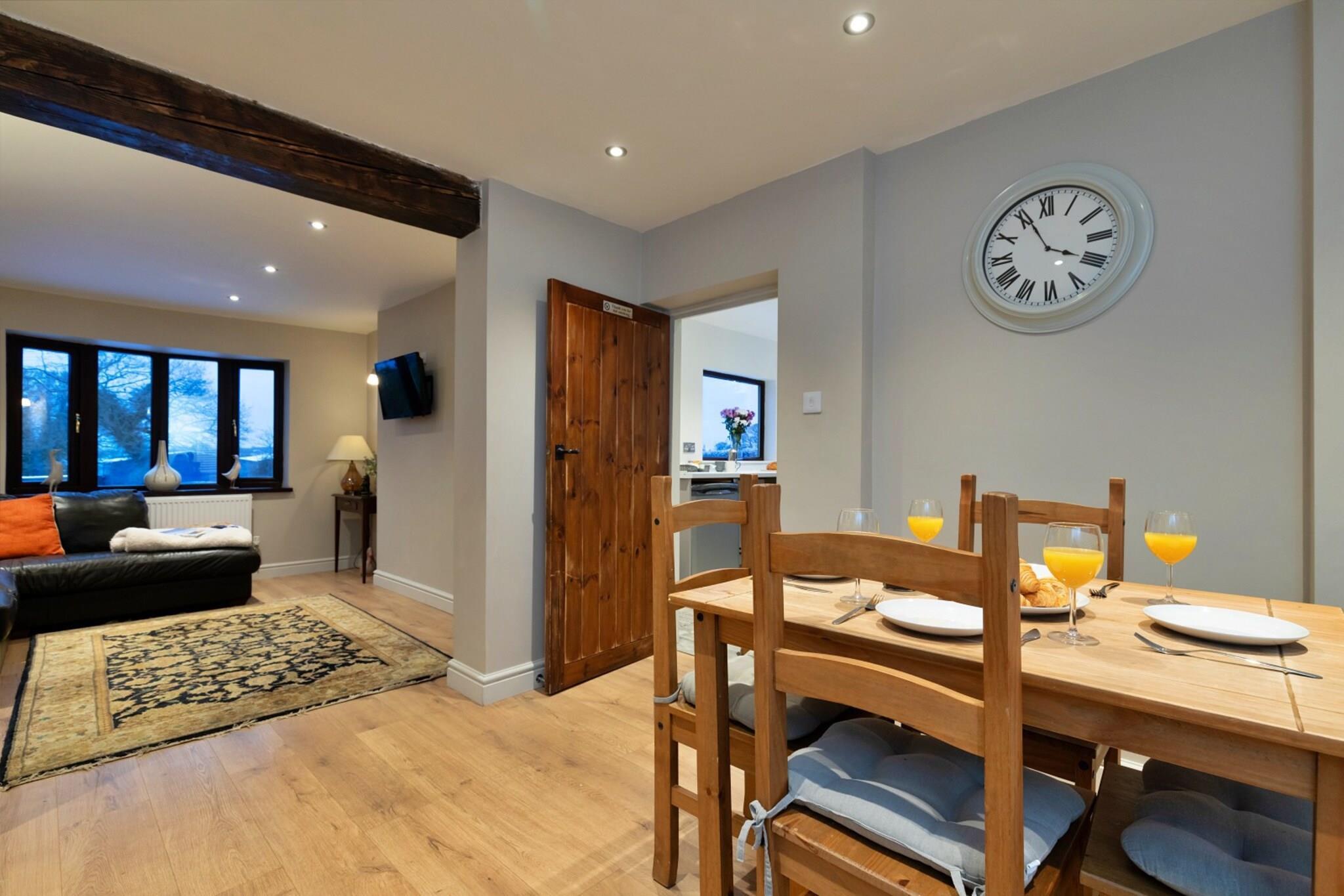 Set in the picturesque village of Kingsley, this charming cottage is ideally located just a 10-minute drive from Alton Towers, making it perfect for families and thrill-seekers alike. Accommodating up to six guests, the property features three cozy bedrooms. The spacious master bedroom boasts a double bed and an en-suite shower room with stunning views of the surrounding landscape. The second double bedroom offers ample storage, while the third bedroom with bunk beds is ideal for younger guests. These two rooms share a family bathroom with a bath and separate shower. The cottage provides a comfortable and relaxing environment with a modern, fully equipped kitchen and a dining area perfect for family meals. After a day of exploring, unwind in the cosy lounge with a large corner sofa, Smart TV, and Wi-Fi. The property also offers parking for up to four vehicles, as well as a large garden for pets to play. It’s pet-friendly, welcoming up to two dogs, and provides an outdoor seating area for enjoying the warmer months. In addition to the thrill of Alton Towers, the surrounding area offers plenty of opportunities for outdoor adventures. Explore Hawksmoor and Dimmingsdale nature reserves for scenic walking trails or take a magical ride on the Churnet Valley Railway, known for its nostalgic steam train dining and Polar Express experience. Whether you're seeking thrills or relaxation, this cottage offers the perfect base for an unforgettable family getaway.