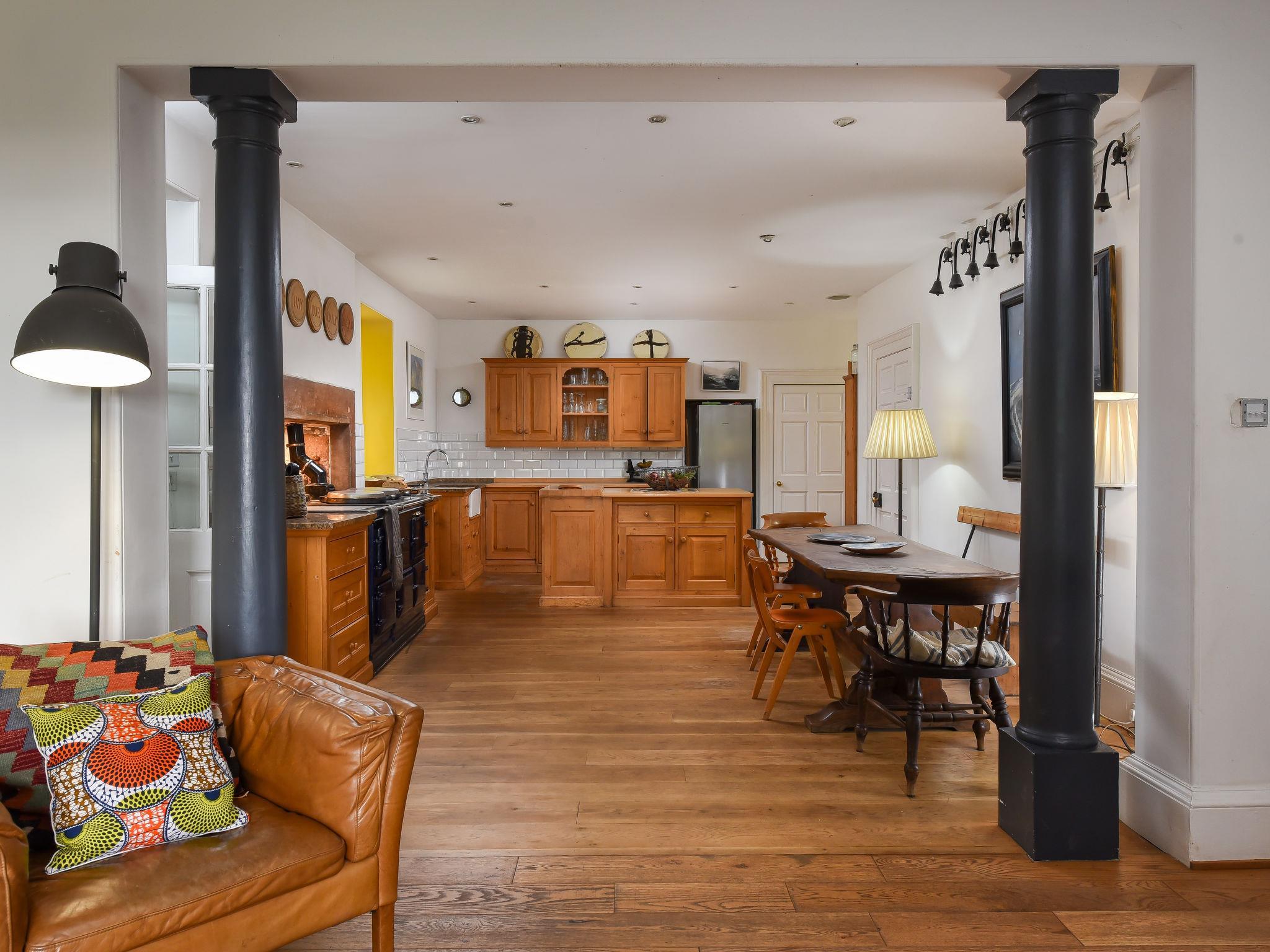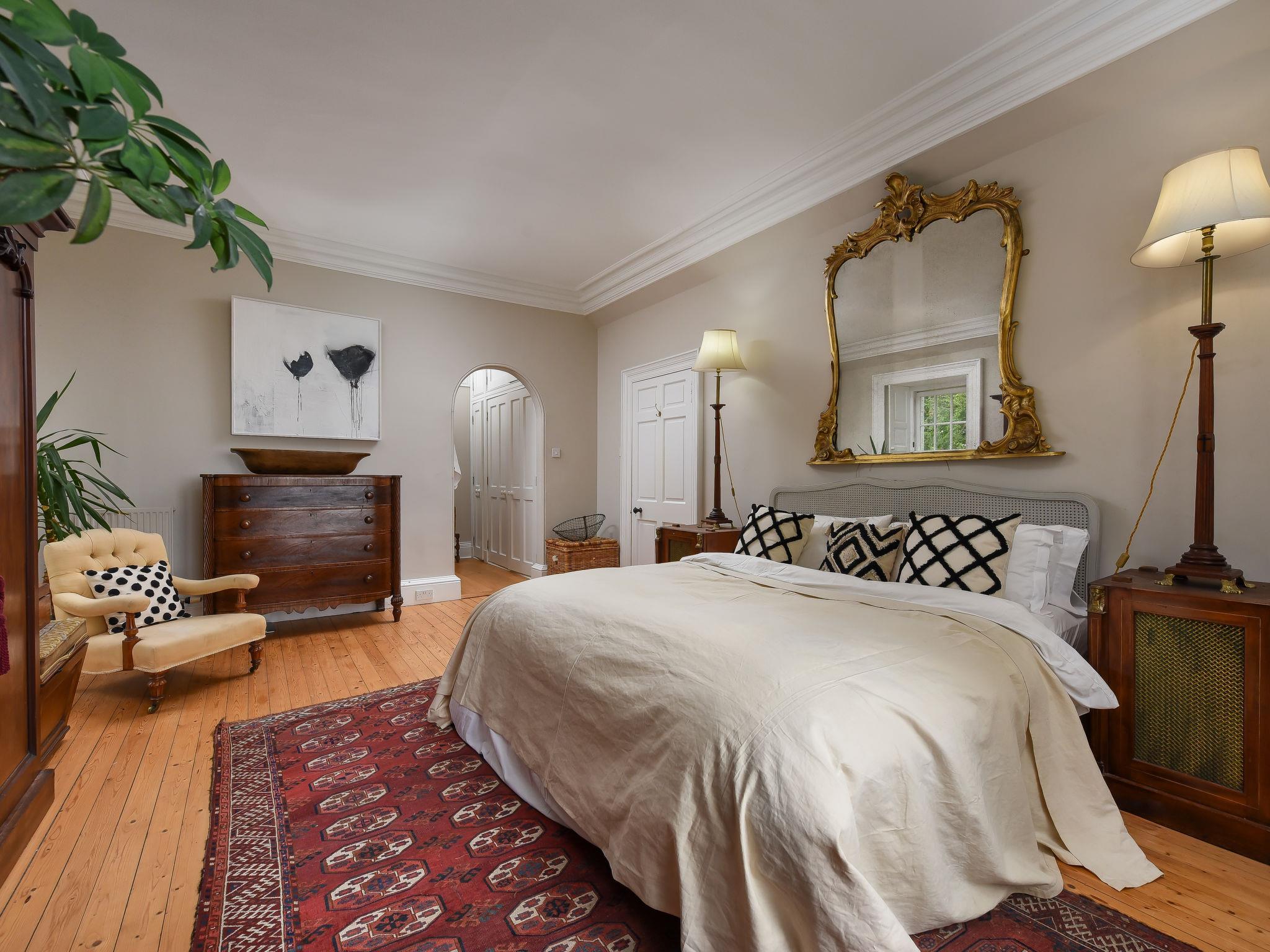 6-room house on 2 levels. Spacious, beautiful and luxurious furnishings: open large living/dining room with heating stove. Exit to the garden. Dining room with open-hearth fireplace and dining table. Lounge with library and wood-burning stove. Large kitchen-/living room (2 hot plates, oven, dishwasher, toaster, kettle, freezer, cooking island) with dining table. Sep. WC. Heating. Upper floor: 1 large double bedroom with 1 double bed and shower/WC. 1 double bedroom with 1 double bed and bath/shower/WC. 3 double bedrooms, each room with 1 double bed. 2 bathrooms, sep. WC, 2 Baths/showers/WC. Heating. Wooden floors. Comfortable furnishings in the country house style. Terrace furniture, barbecue, conservatory. Beautiful view of the countryside. Facilities: washing machine. Internet (WiFi). Parking at the house. Please note: non-smoking house. TV only EN. Smoke alarm.