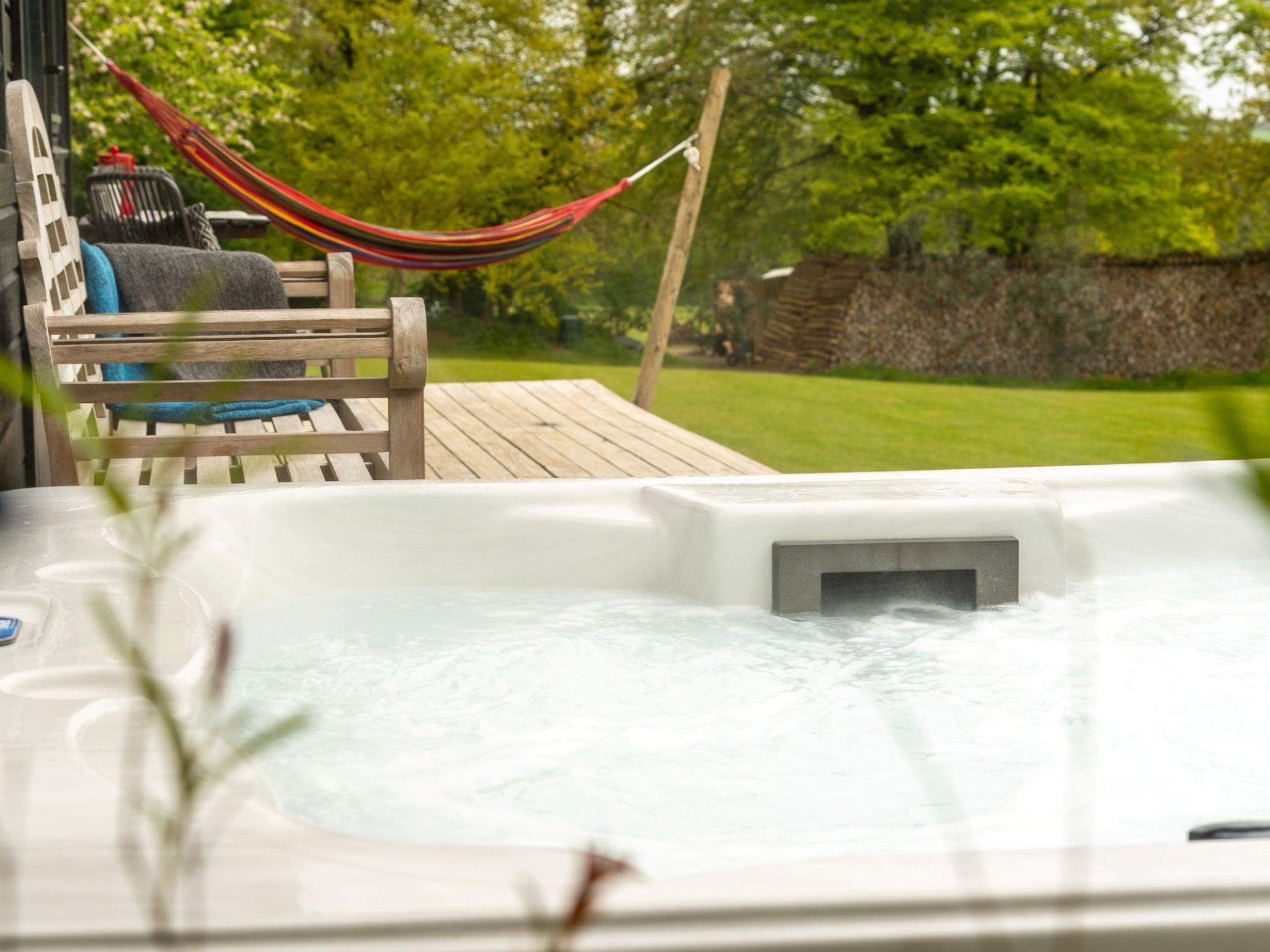 Please note as this is an eco concious site you will need to bring your own towels. Beautiful, cosy chalet "Lodge 4 - Hot Tub Lodge", surrounded by trees and fields. On the outskirts, 10 km from the centre of Launceston, in a secluded position, 1 m along the wooded area, 20 km from the sea, 250 m from the lake, 200 km from the beach, in the countryside. For shared use: trees, orchard. Private: hot tub, terrace, garden furniture. In the house: central heating system. Parking. Grocery 11 km, supermarket 11 km, bakery 10 km, café 3 km, bus stop "North Petherwin Bus Shelter" 6 km, railway station "Liskeard" 38 km, sandy beach "Crackington Haven" 18 km, lake Roadford Lake 20 km. Sailing school 20 km, tennis 12 km, minigolf 21 km, fishing possibilities 20 km. Nearby attractions: Summerleaze Beach 21 km, Halvana Plantation 25 km, Tintagel Castle 28 km, Trethorne Leisure Park 15 km, Boscastle Historical Fishing Port 25 km, Hidden Valley Puzzle Park 15 km. Well-known lakes can easily be reached: Roadford Lake 20 km. Hiking paths: Nines Stone Circle 29 km, Crackington Haven Circular Walk 20 km. Please note: suitable for families. On the estate animal husbandry. Animals in the neighbourhood. The complex has another 5 chalets for rent.