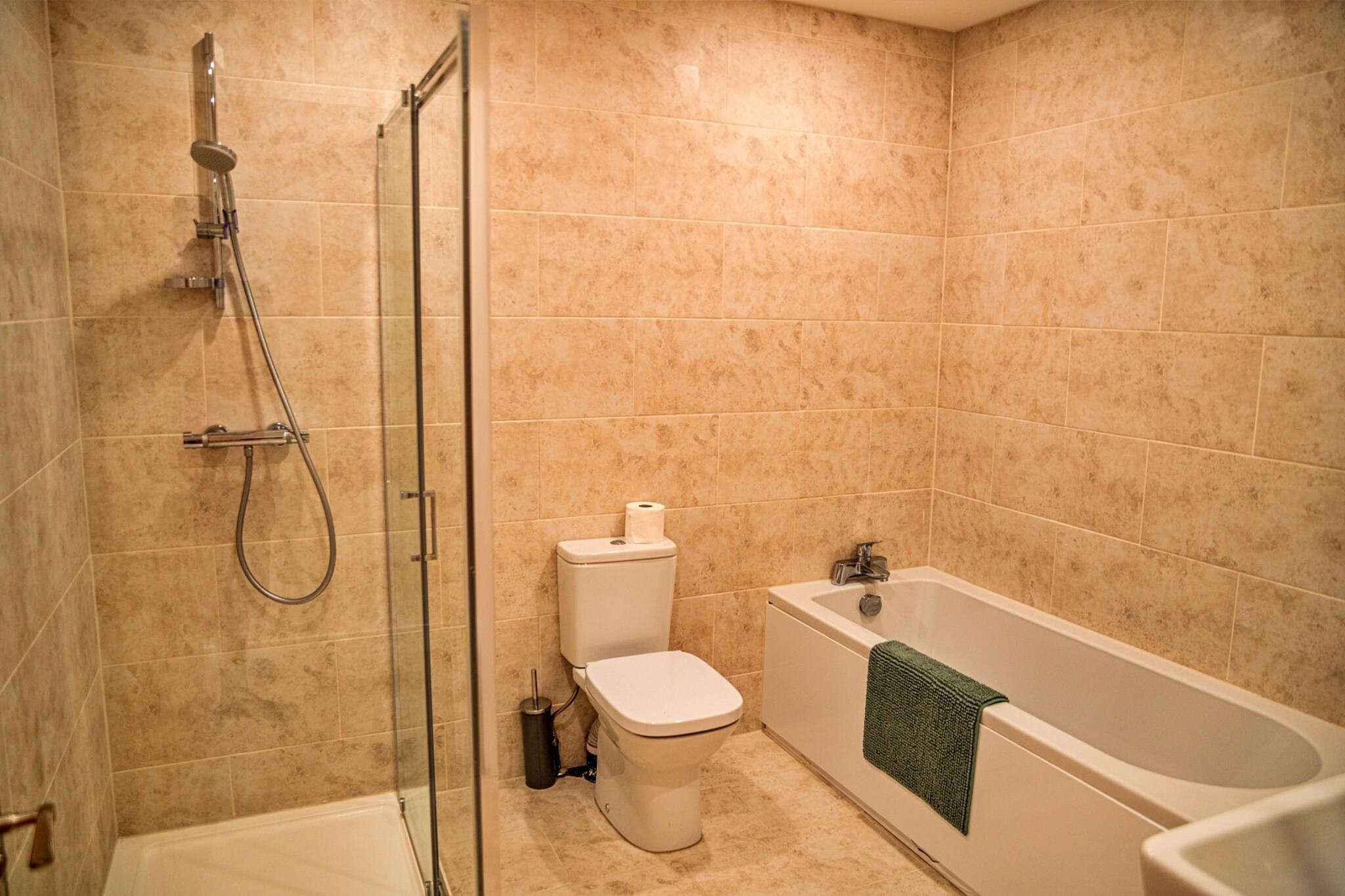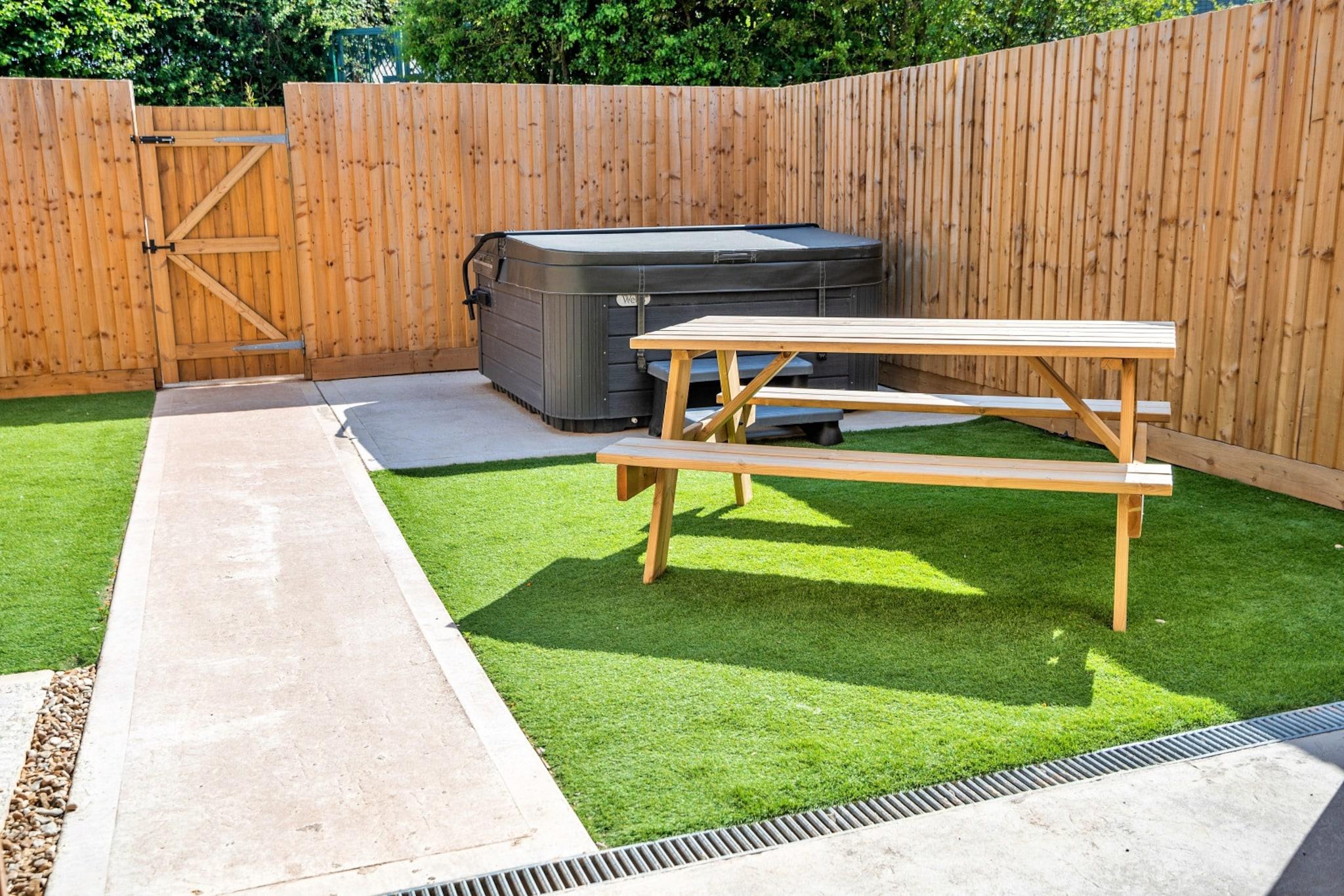 Ground floor: (Living room(TV), Kitchen(hob(electric), electric kettle, toaster, oven, microwave, dishwasher, fridge, freezer, dishes and cutlery(Bowls, chopsticks, plates, cups, etc.)), Internet access) On the 1st floor: (bedroom(double bed), bedroom(double king size bed), bedroom(single bed, single bed), Bedroom with bathroom(double king size bed, shower), bathroom(shower), bathroom(shower)) Garden Furniture , tumble dryer, hot tub, washing machine, garden, parking, high chair, hairdryer