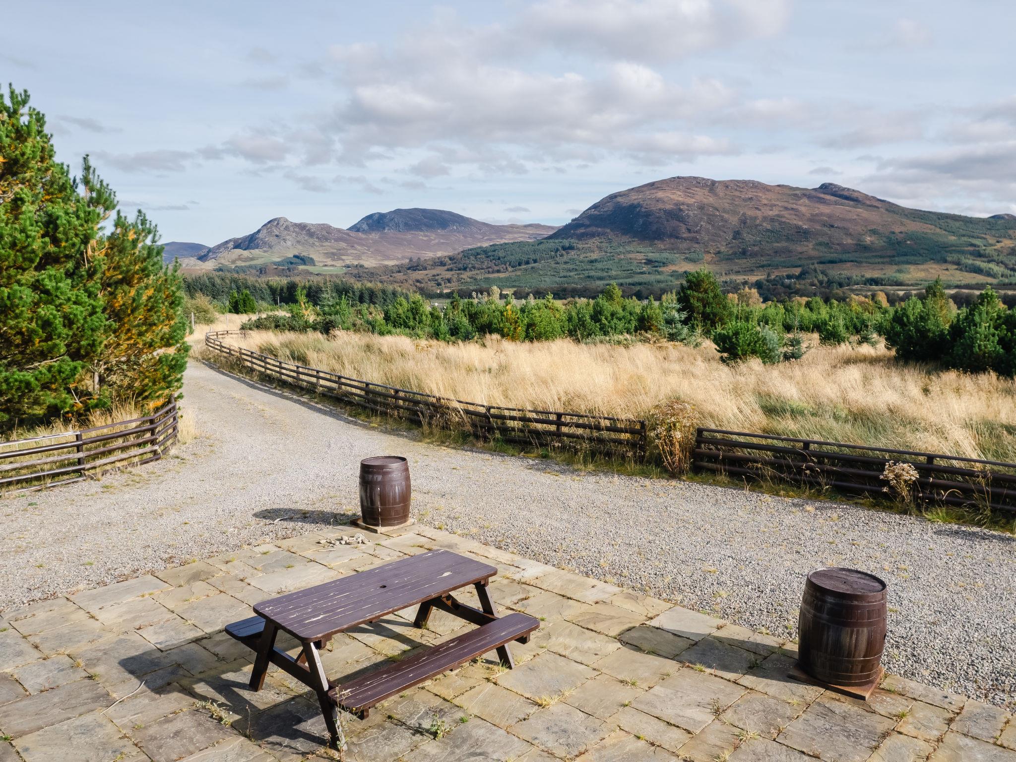 Whitebridge 13 km from Fort Augustus: Modern cottage "Mountain View Lodge", detached, surrounded by fields. In a secluded, quiet position, 400 m from the lake, in the countryside. Private: large garden (fenced), parking at the house. Shop 12 km, grocery 12 km, supermarket 40 km, shopping centre 40 km, restaurant 12 km, bus stop "Tourist Information" 13 km. Golf course (18 hole) 40 km, fishing possibilities 400 m. Nearby attractions: Fort Augustus Abbey 12 km, Inverness 40 km, Isle of Skye 159 km. Well-known lakes can easily be reached: Loch Ness 12 km. Please note: car recommended. Suitable for families, baby equipment on request.
